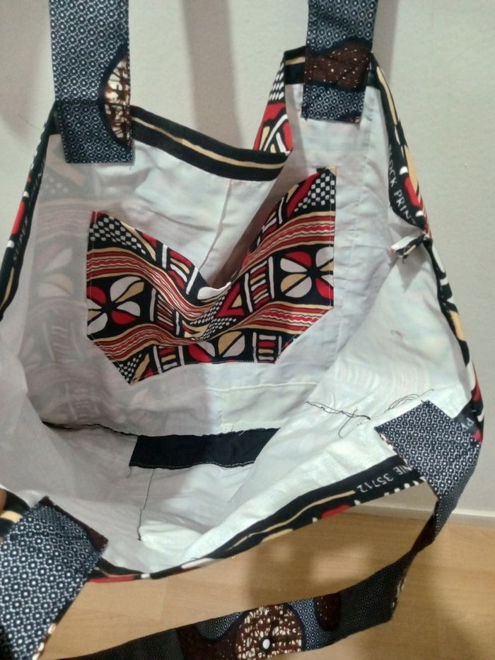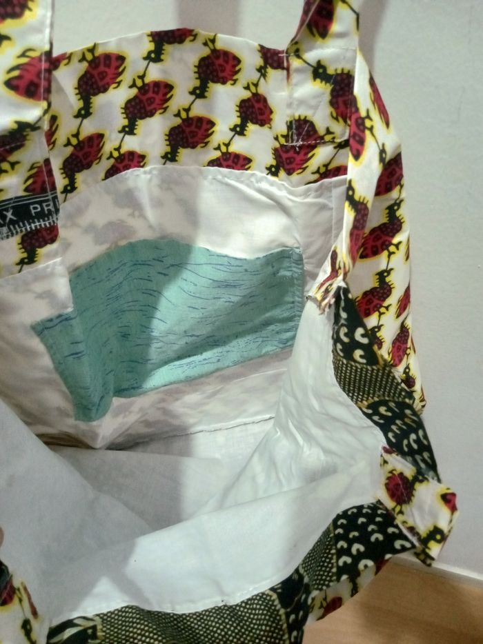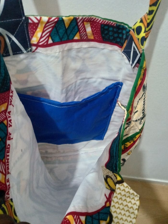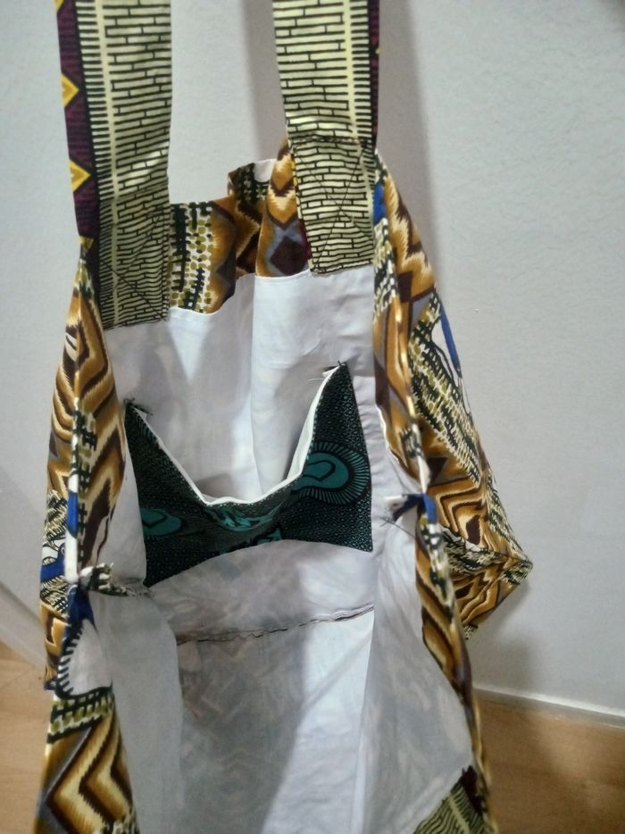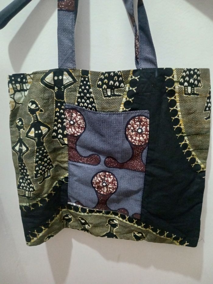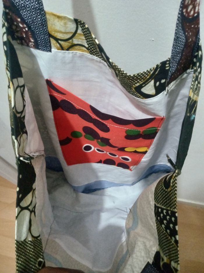 Sac en tissu africain. Avec deux poches. Pour faire des courses pour mets des vêtements dedans en fait c'est pour faire des courses n'importe quelle course