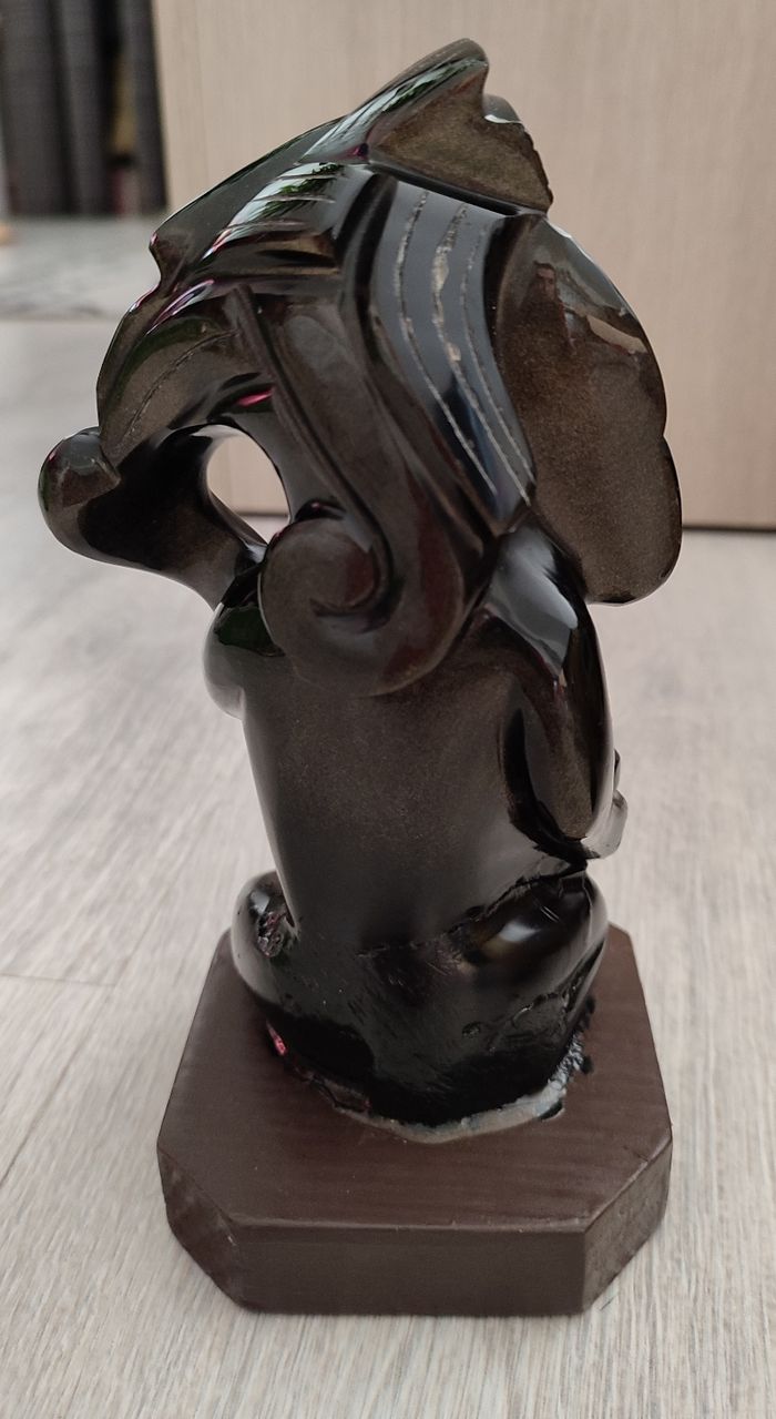 Elle a des reflets irisés, vu à l'image. Hauteur 20 cm