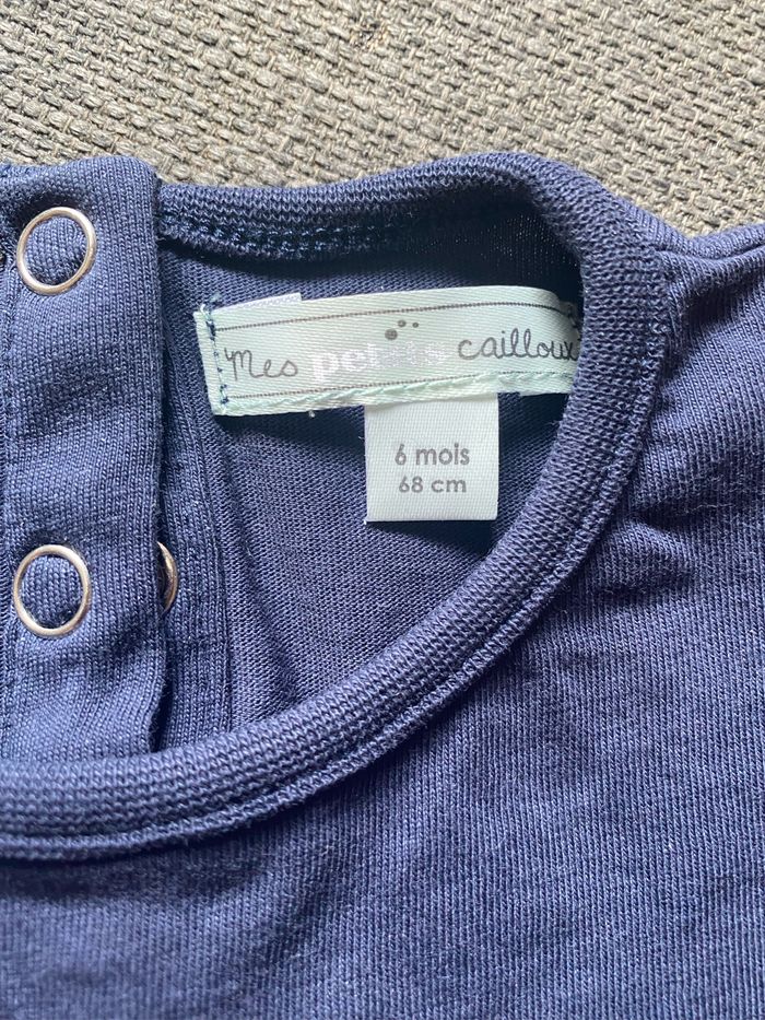 Jolie t-shirt bleu marine à manches courtes. Très bon état Marque mes petits cailloux Taille 6 mois