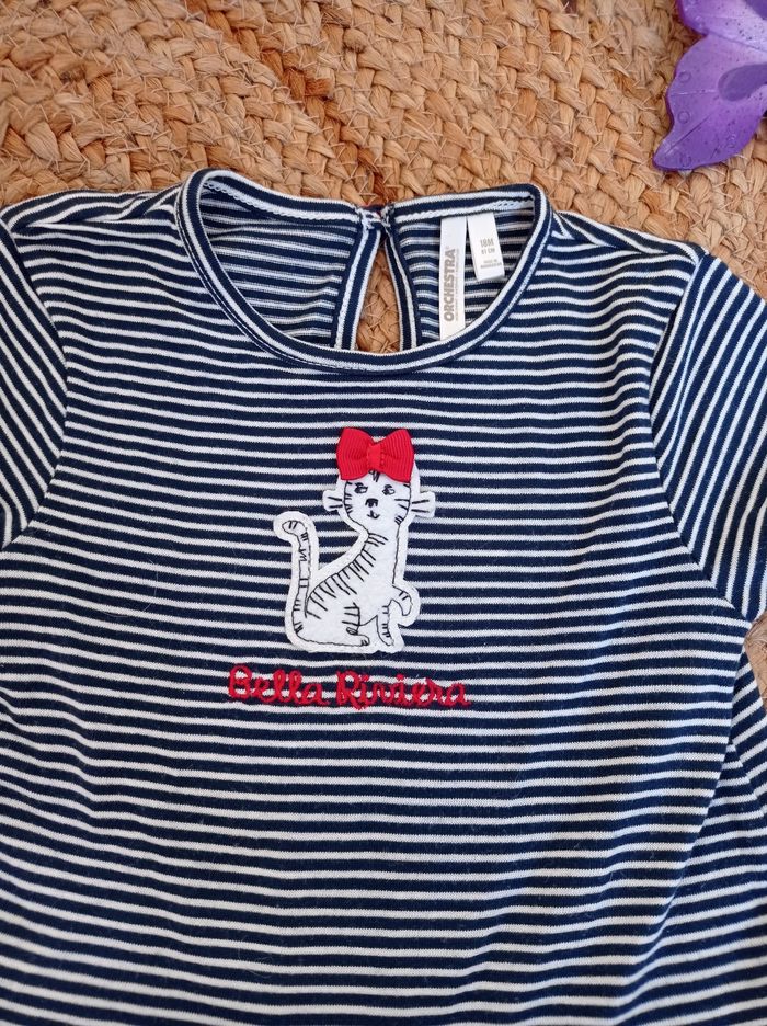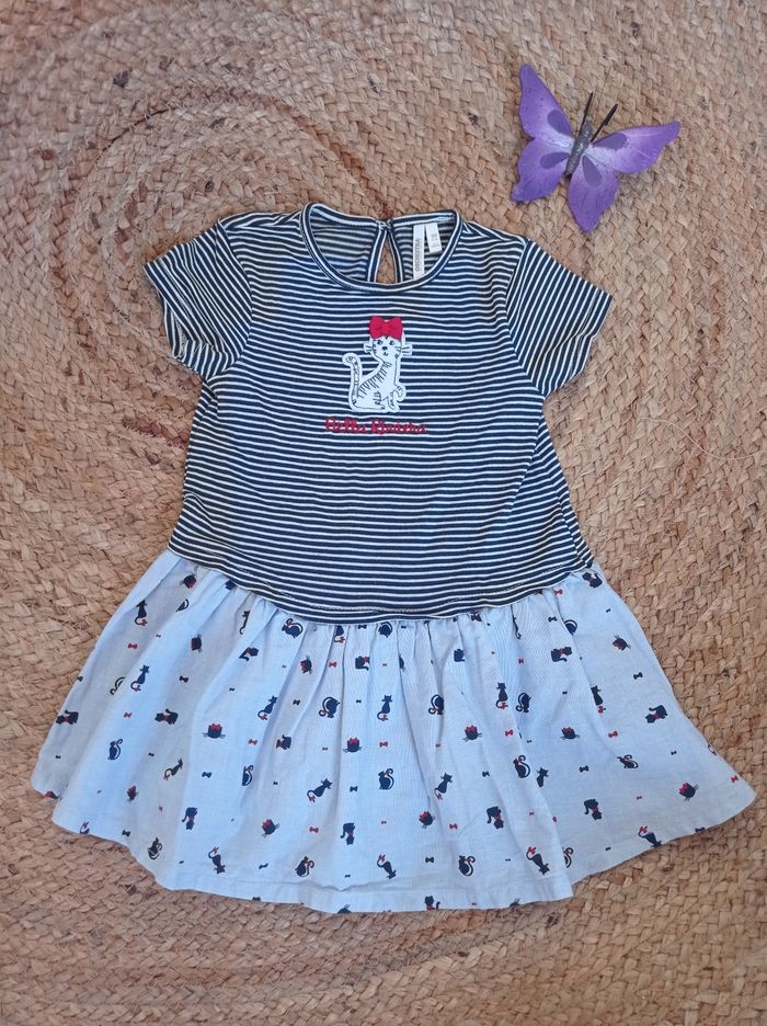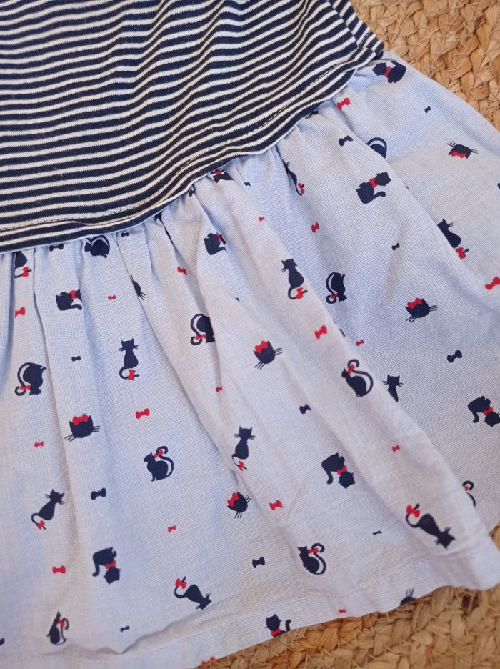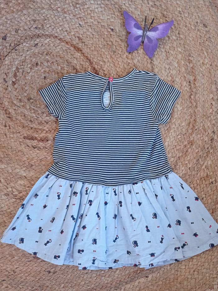 Orchestra Robe bleue A rayures Imprimé chat Taille 18 mois 81 cm #douceur_18moisfille #douceur_printempsete C18