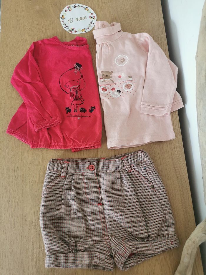 Lot de 3 articles bébé fille 18 mois short + 2 t-shirt manches longues sergent major, TAO, - photo numéro 1