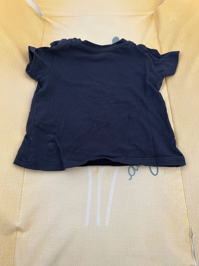 T-shirt bleu marine à manches courtes. Taille : 6 mois.