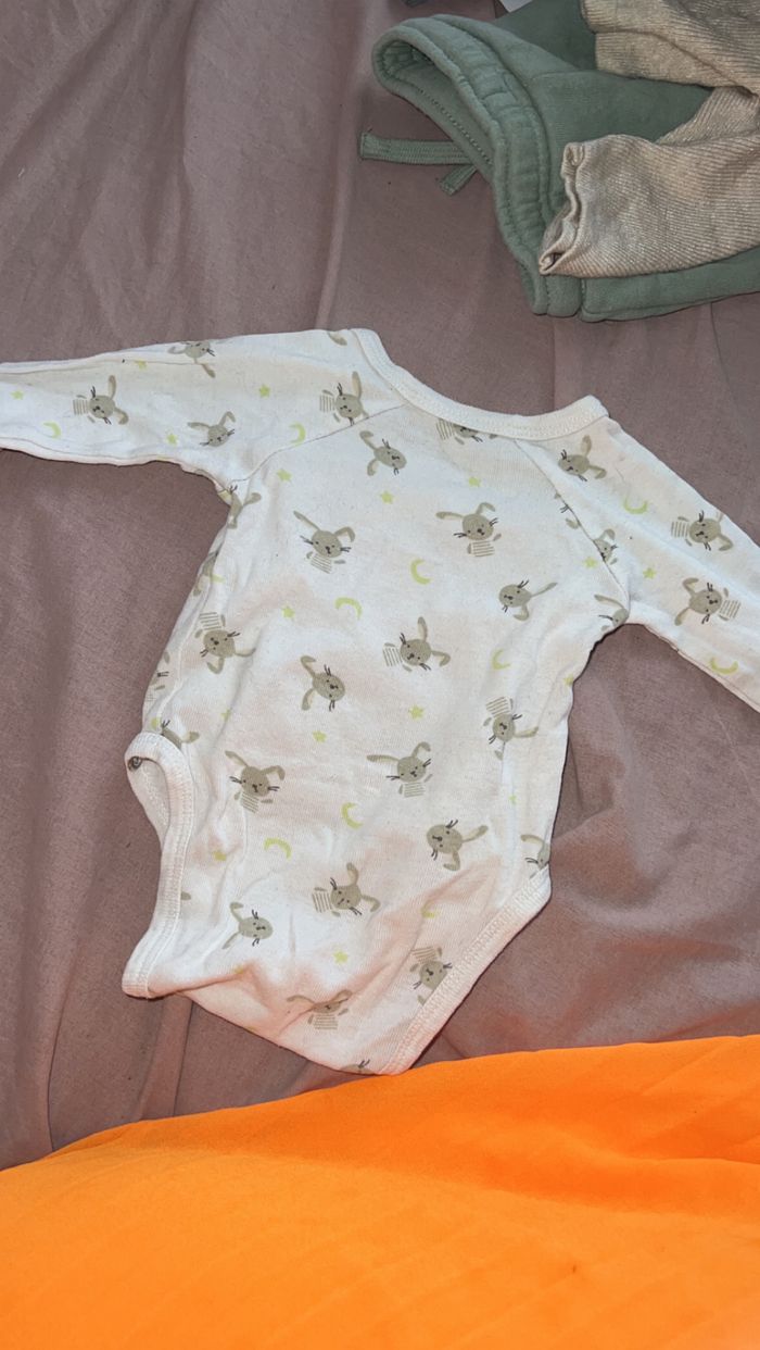 Body manches longues blanc avec motifs lapins Bon état, 1 mois N’hésitez pas à aller voir les autres articles sur mon profil.😉