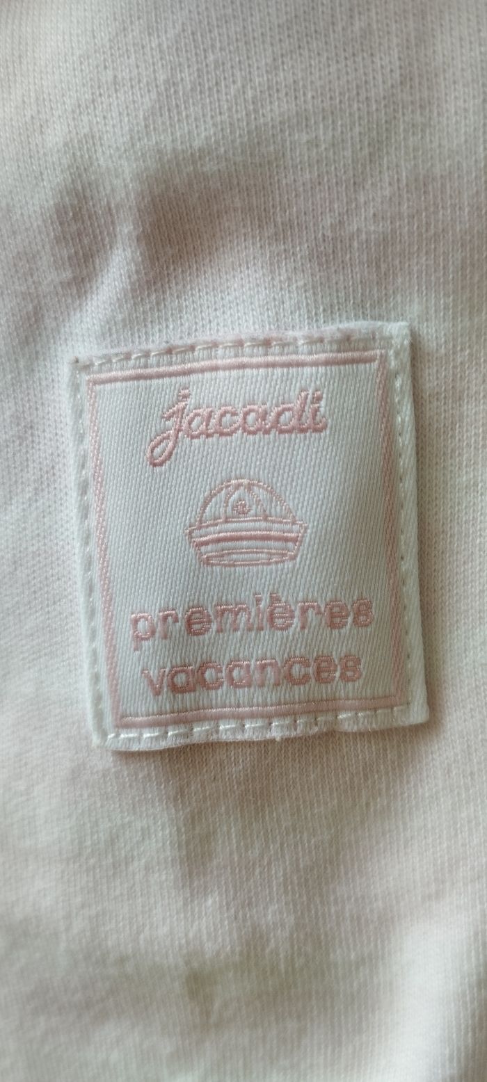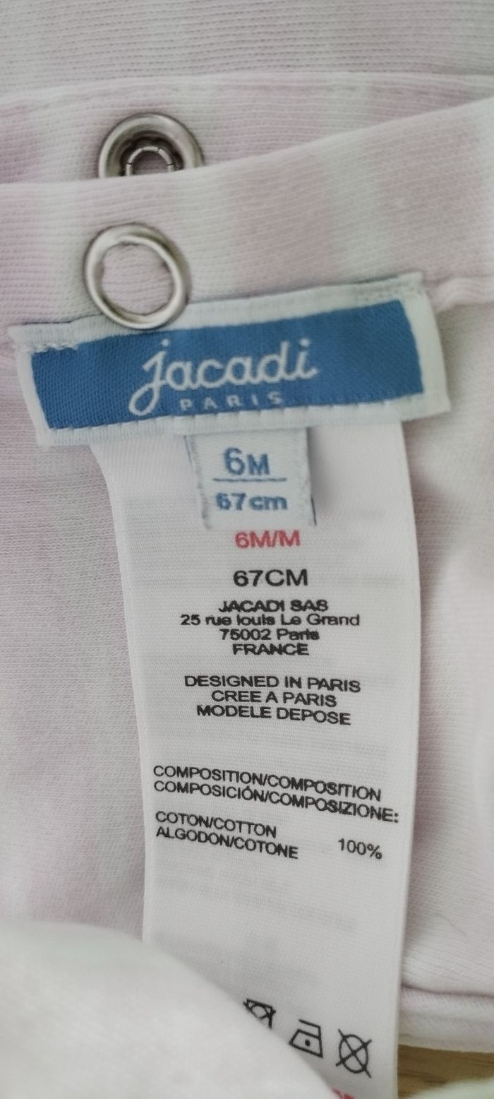 Barboteuse Jacadi rayée rose et blanche. Taille 6 mois Très peu portée 1 seul enfant. Très bon état.