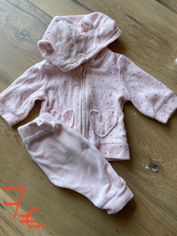 Ensemble jogging+ gilet en velours rose Kiabi 1 mois