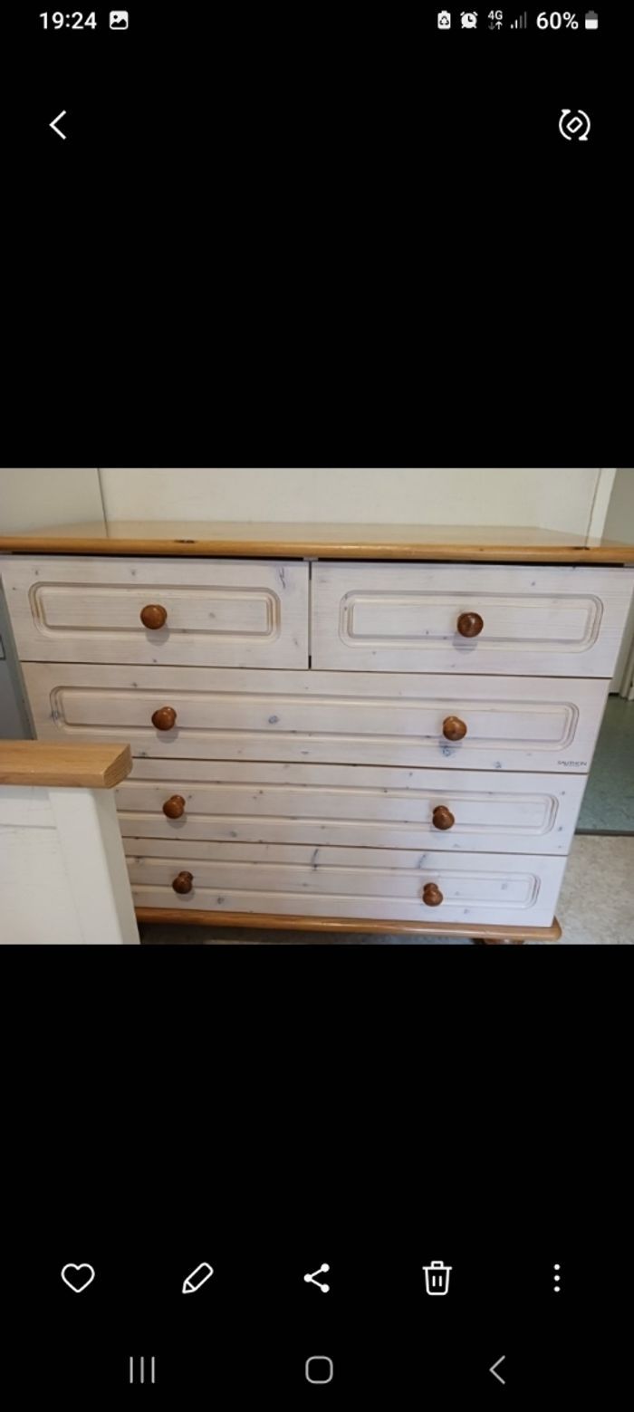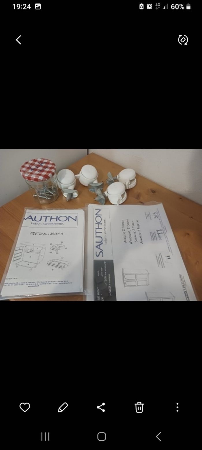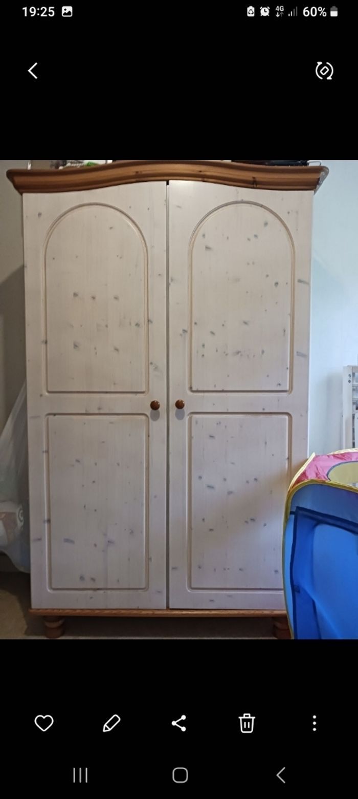 Lit à barreaux ajustable avec draps housses et une allaise, armoire penderie, commode