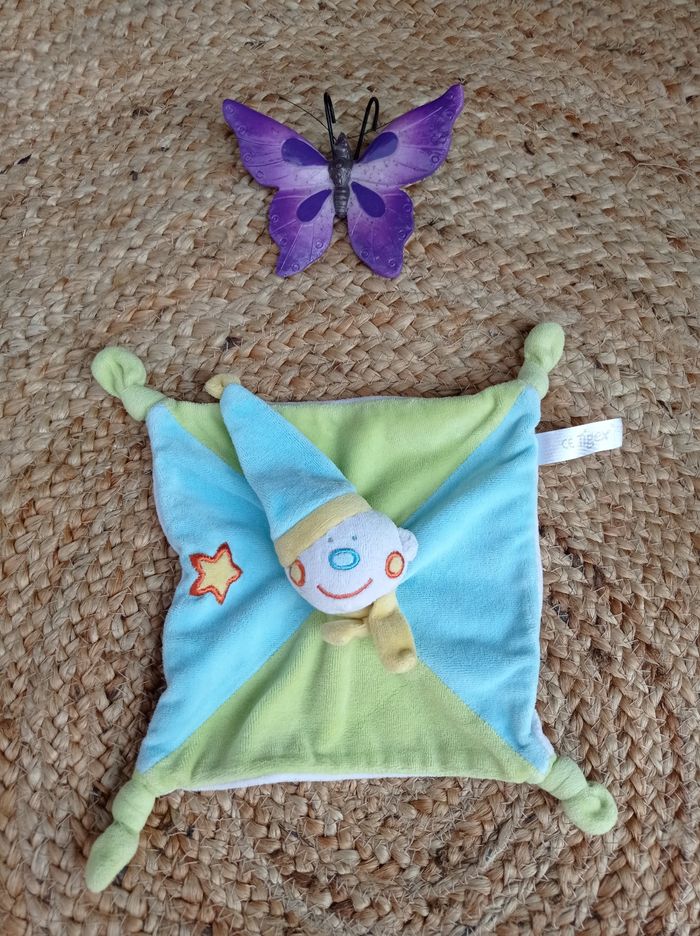 Tigex Doudou clown Vert bleu Broderie étoile Bonnet écharpe Moins doux qu'à l'origine #douceur_doudou C17