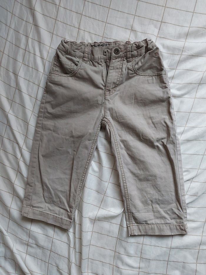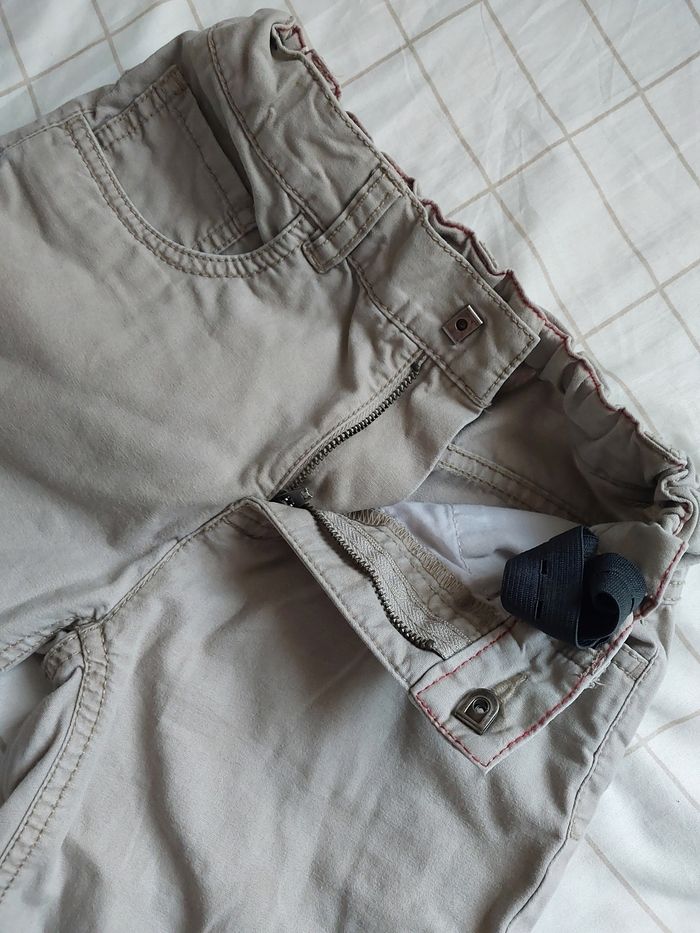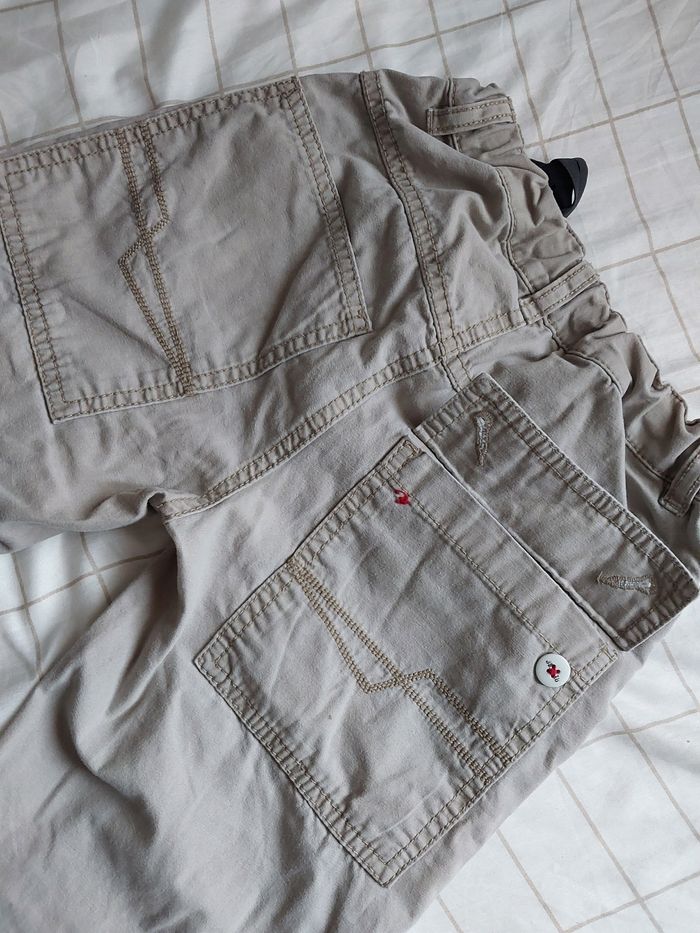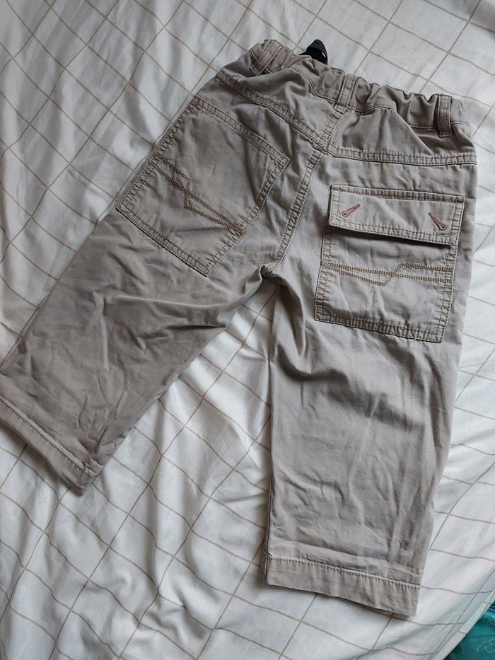 Bermuda beige. Petit bouton de décoration sur la poché arrière de perdu