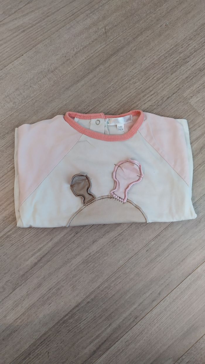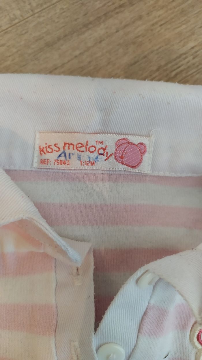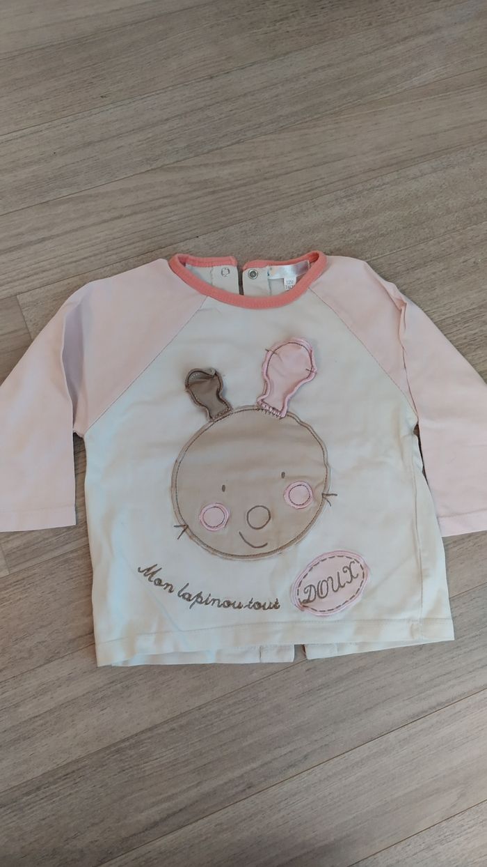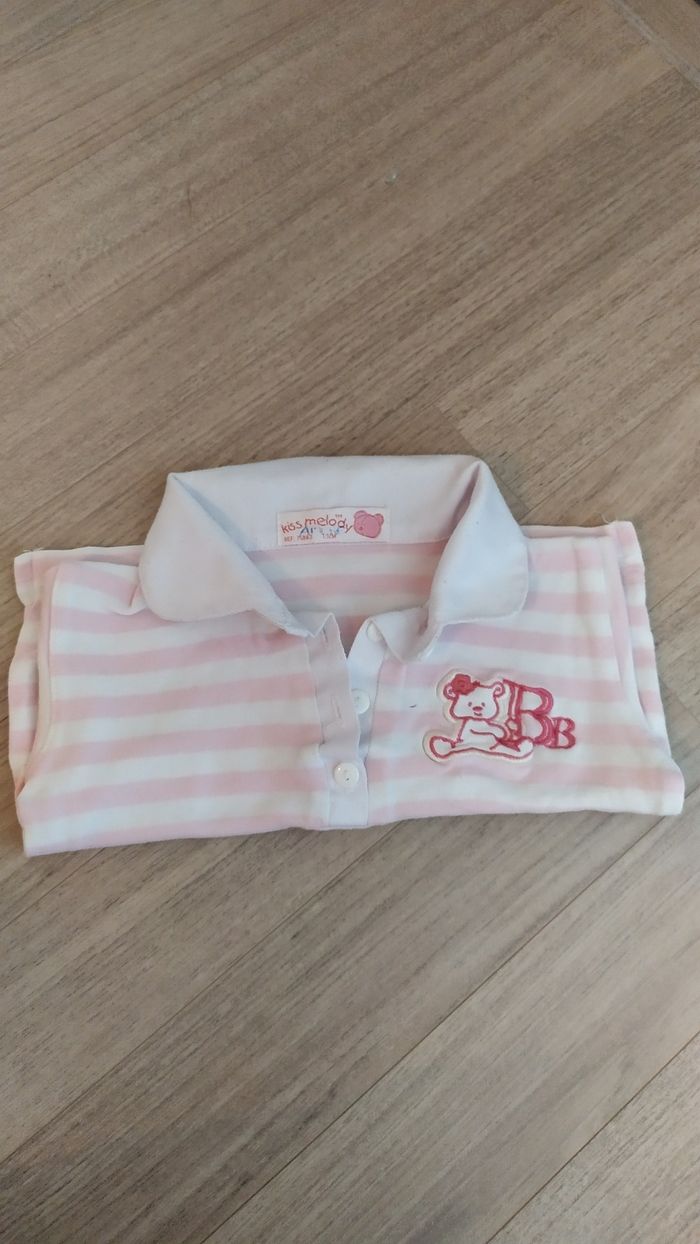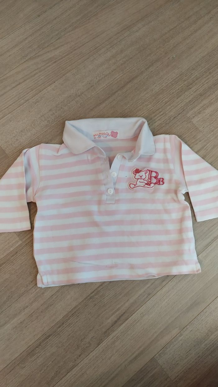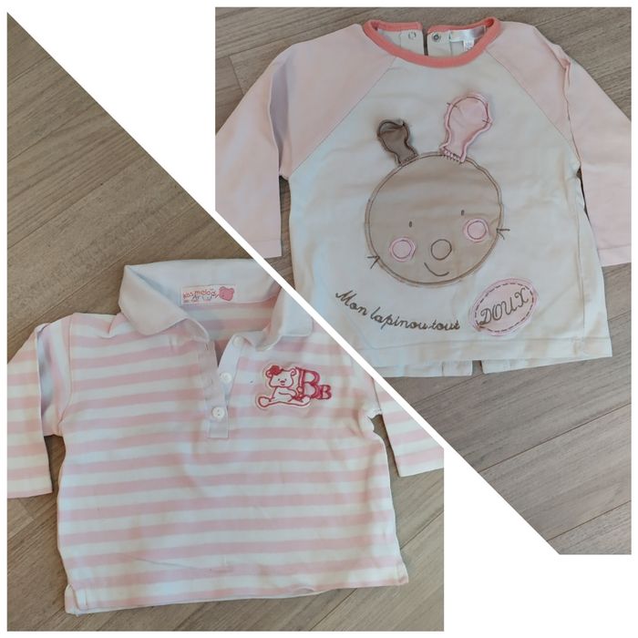 1 Polo rayé rose et blanc 1 t-shirt blanc et rose avec son nounours cousu