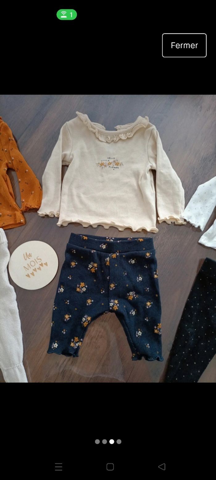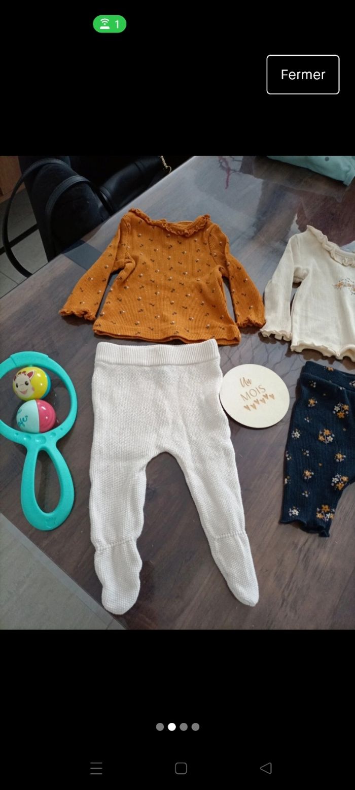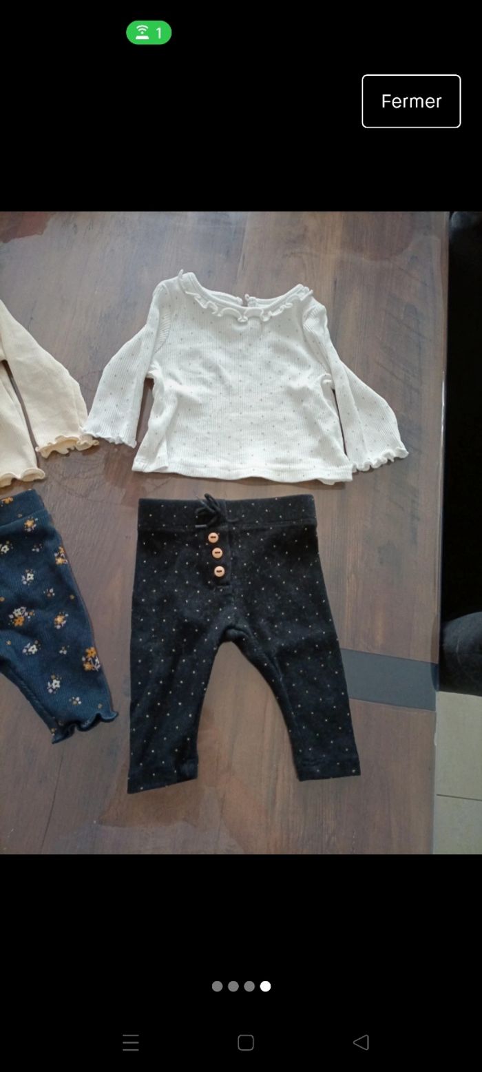 Bonjour Je vends 3 ensembles pour bébé 1 mois, acheté a Kiabi Comme neuf