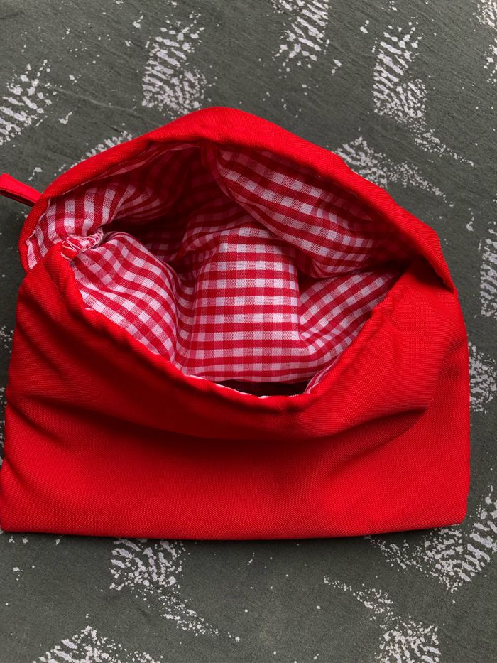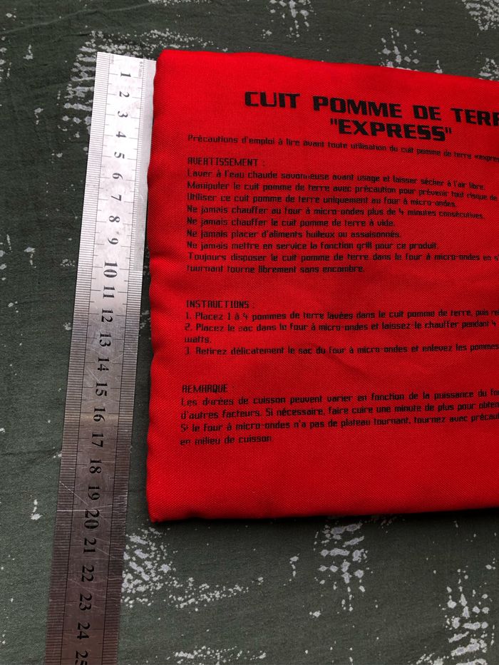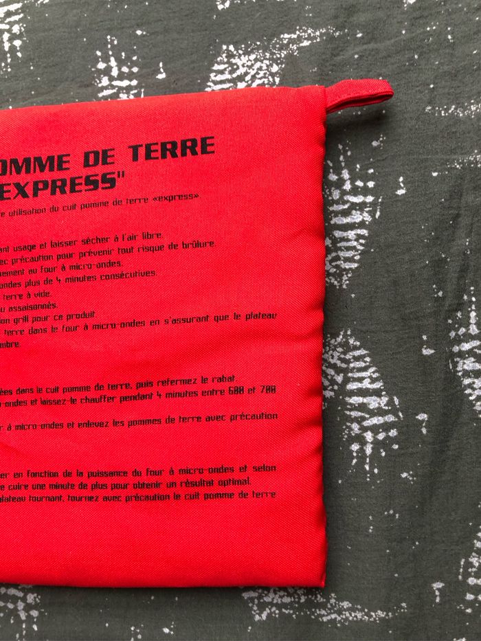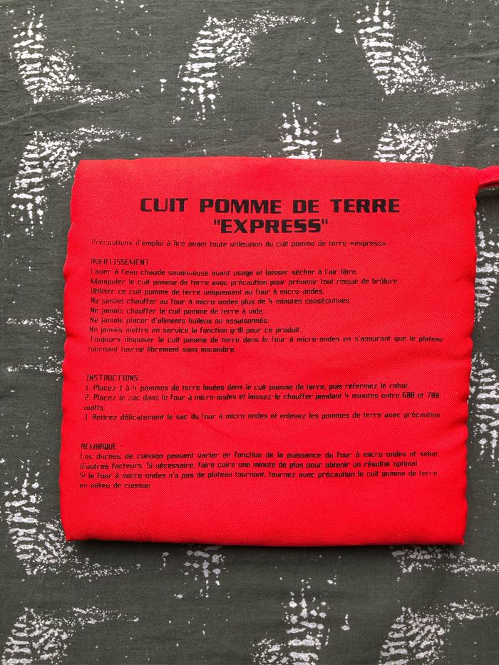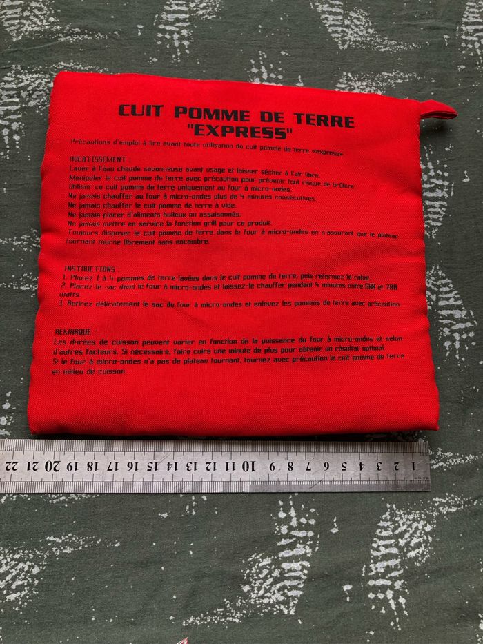Cuit pomme de terre EXPRESS Pour cuire les pommes de terre au micro ondes en 4 minutes Dimensions Pochette 20 x 21 cm Rouge intérieur Vichy rouge