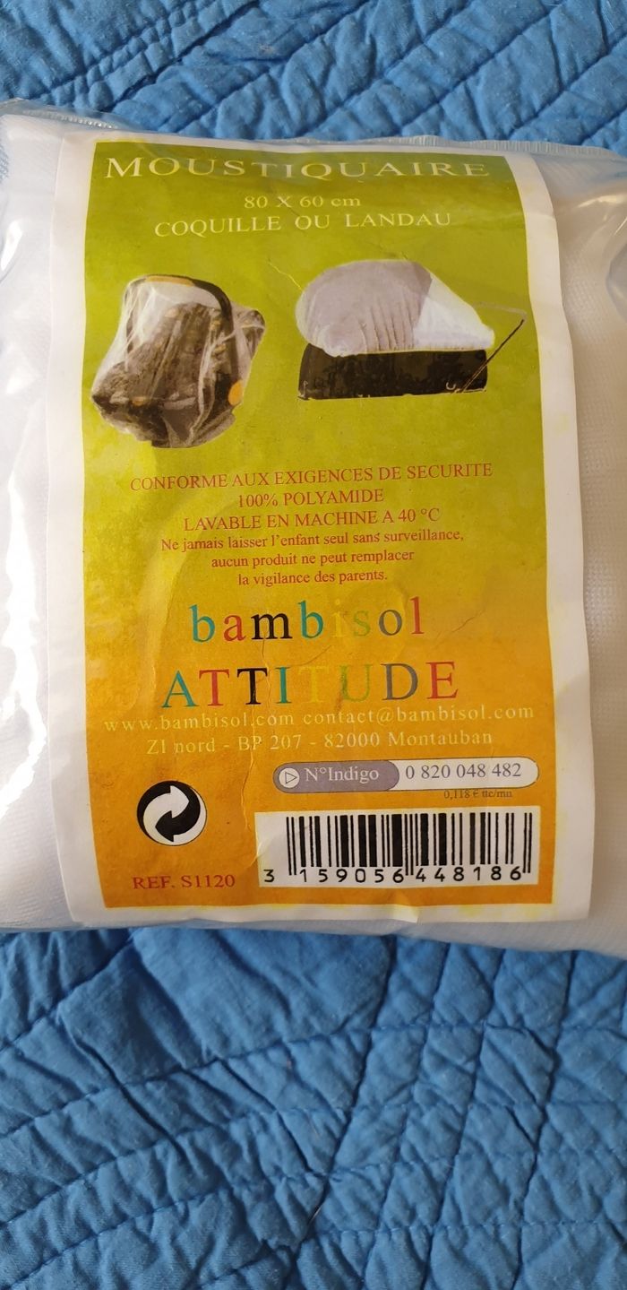 Moustiquaire pour landau ou coque. Marque Bambisol attitude. 80 x 60 cm. Lavable à 40 * . Neuf dans emballage d origine.