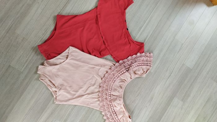 2 bodies sans manche Un rose poudré et un rouge