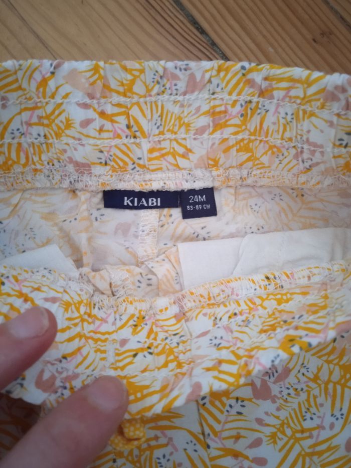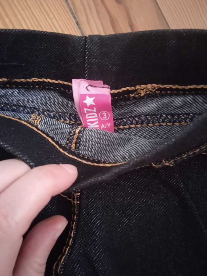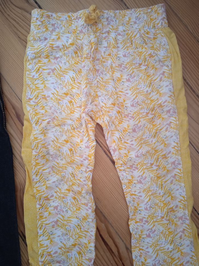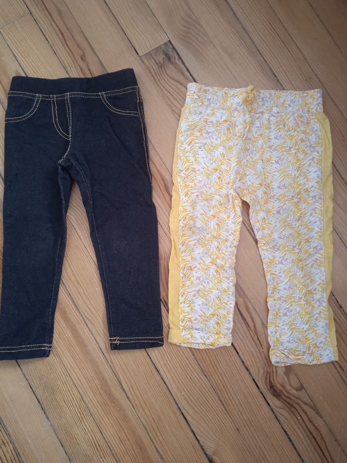 Un jegging noir taille 3 ans mais taille petit plutôt 2 ans et pantalon léger blanc et jaune taille 24 mois de Kiabi en très bon état