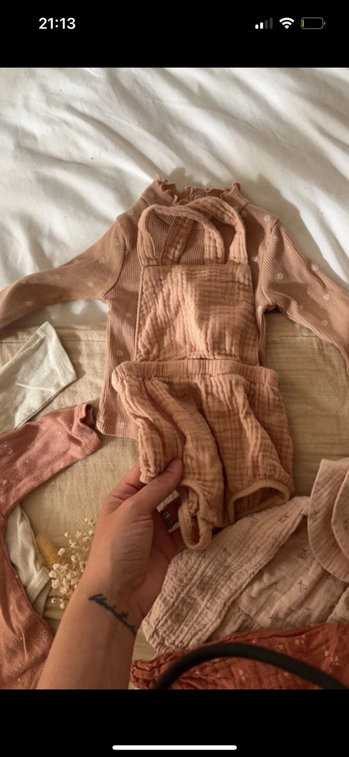 Superbes ensembles et robes en coton gaze de coton dans les tons vieux roses