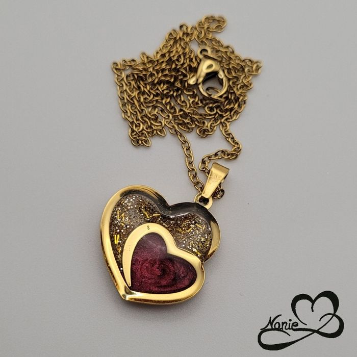 Pendentif en résine cœur doré et rouge - photo numéro 4
