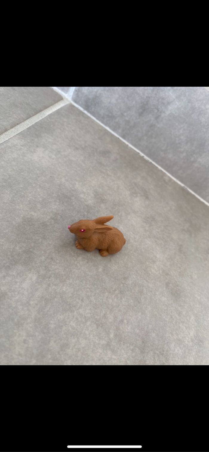 Jouet figurine Lapin. N’hésitez pas à me suivre car encore beaucoup de jouets, des vêtements fille, des), des vêtements garçon (du 1 au 12 mois pour le moment ). Maison non-fumeurs et sans animaux même si je les adore. Il n'y aura pas de poils ou d'odeur désagréable. Vous recherchez quelques choses, demandez moi. Je réponds très rapidement. Bon shopping 😊.