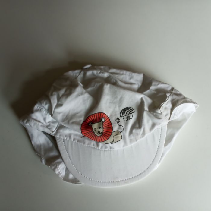Casquette blanche avec dessins. Comme neuve Taille : 47 cm