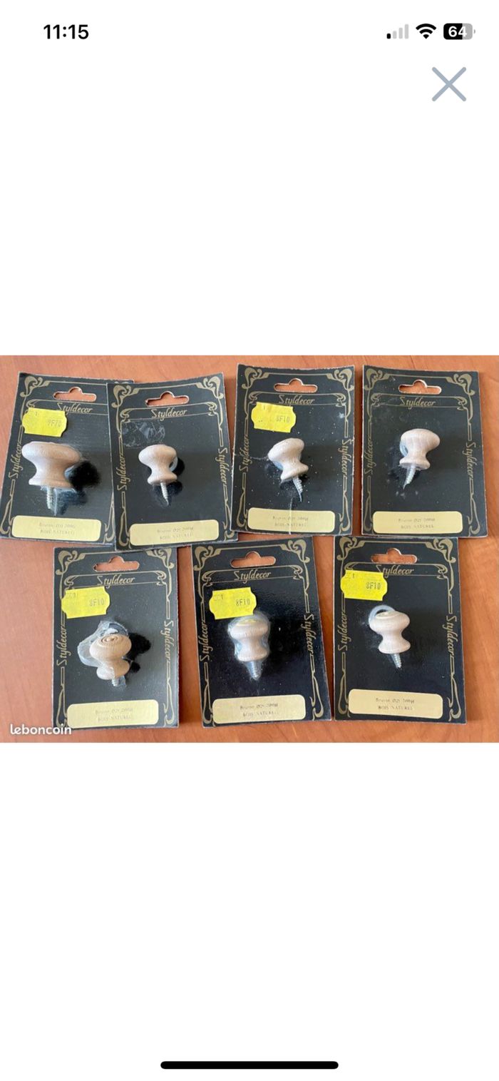 7 boutons tiroirs bois naturel 6 diamètre 25 mm 1 diamètre 35 mm Neufs, non déballés