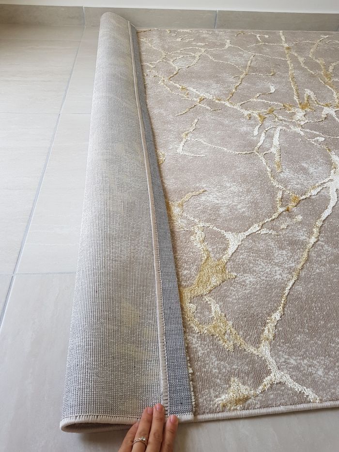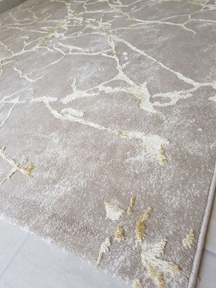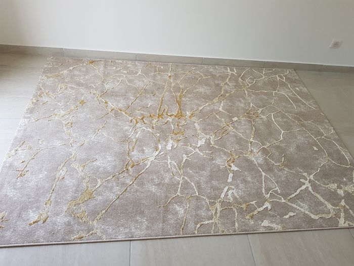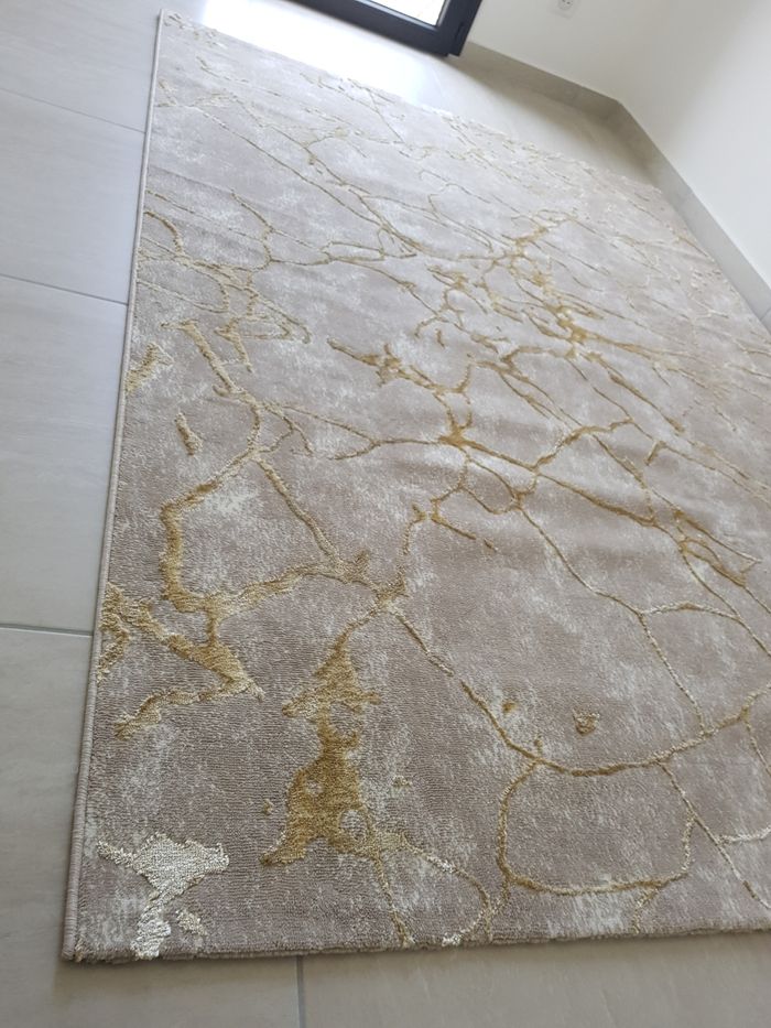 Je vends ce Tapis de sol neuf car trop petit. Il est de couleur beige avec des motifs dorés. Taille 160×200 Le tapis peux se plier pour une expédition dans un carton.