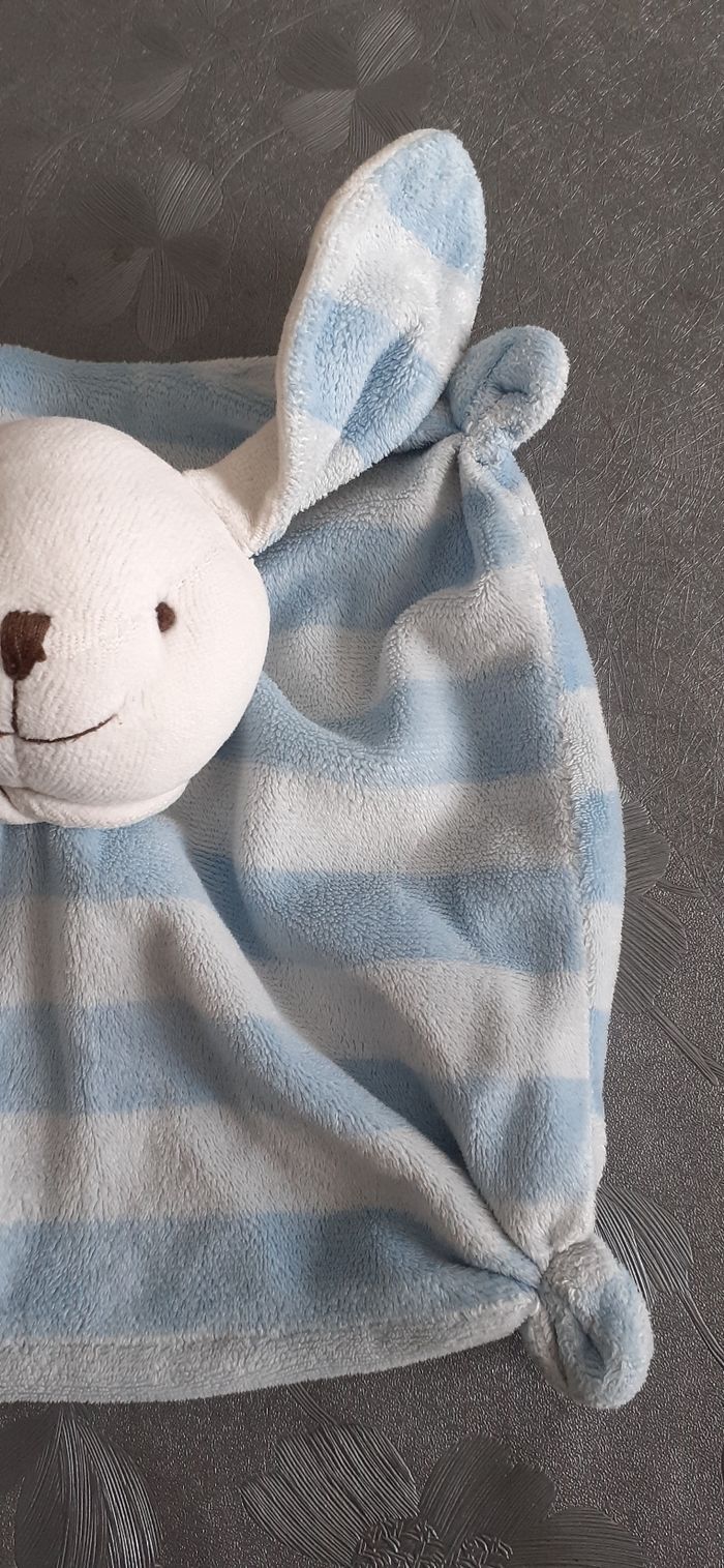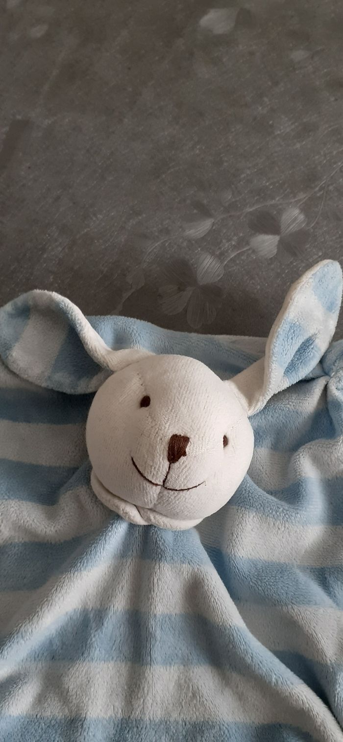 Doudou lapin Couleur bleu clair et blanc Très bon état