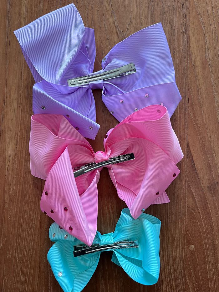 Lot de 3 noeuds à pince pour cheveux 3 couleurs, vert pastel, rose et mauve Le noeud vert quelques taches 3€