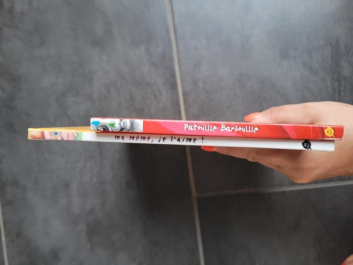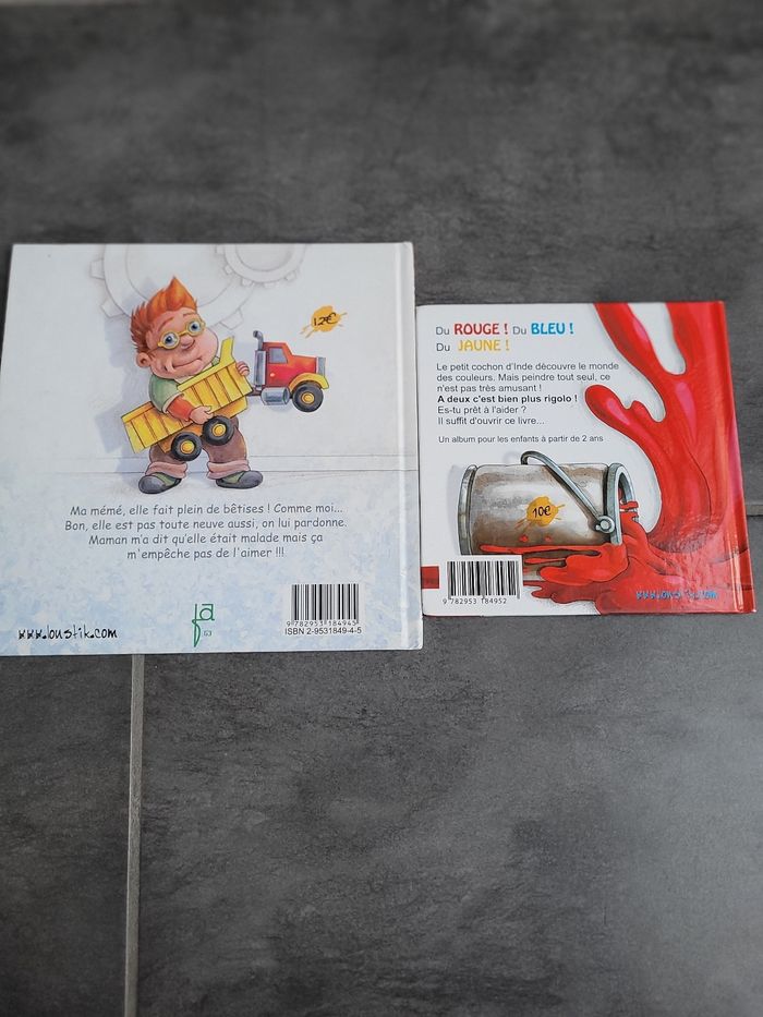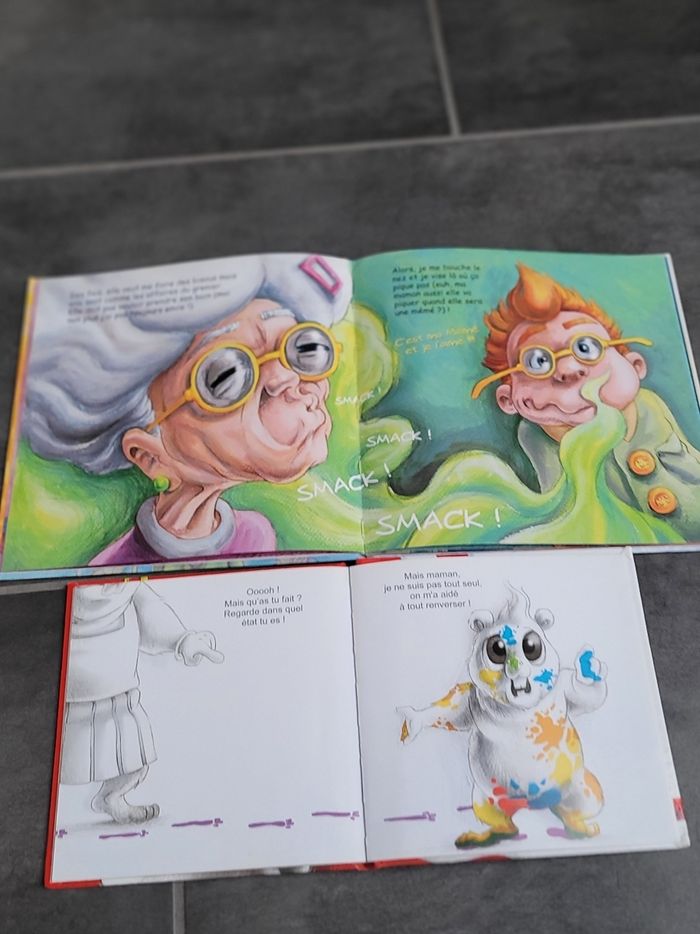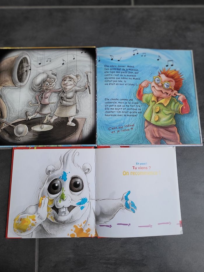 Ma mémé, je l'aime et Patouille Barbouille Petites histoires très attendrissantes L'une d'un petit fils avec sa grande mère et l'autre un petit cochon d'Inde qui fait des bêtises avec les couleurs... Dédicace de l auteure sur la 1ere page du livre "Ma mémé, je l'aime."