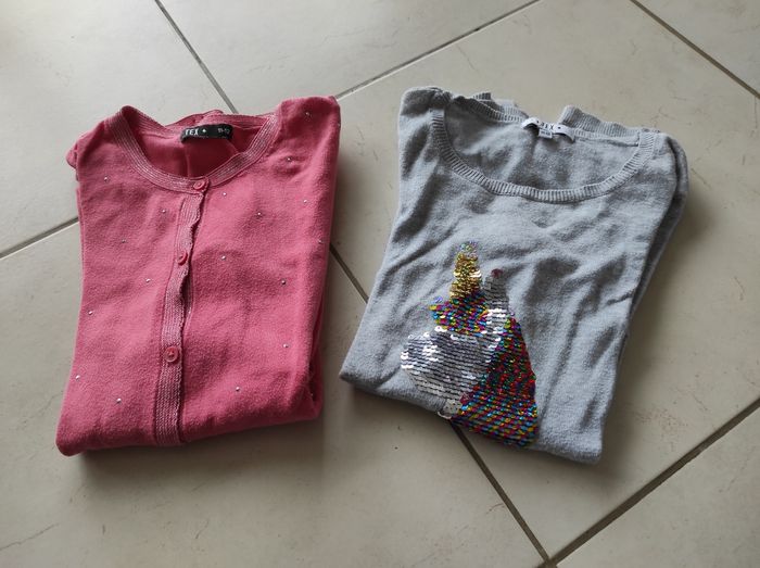 Un gilet corail taille 11-12 ans très bon état Un pull avec licorne sequin gris 11 - 12 ans très bon état