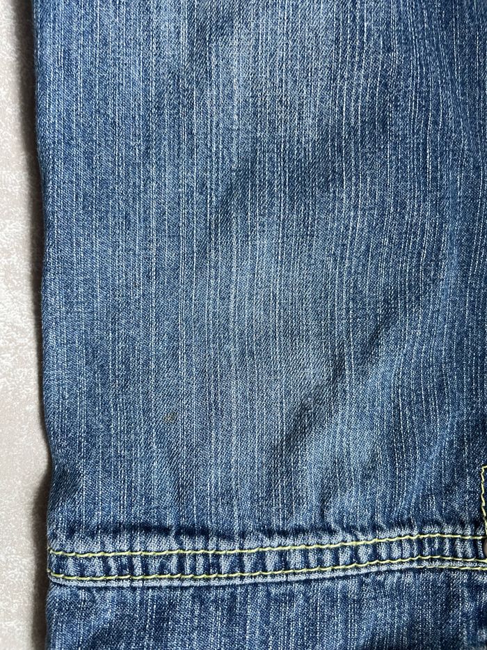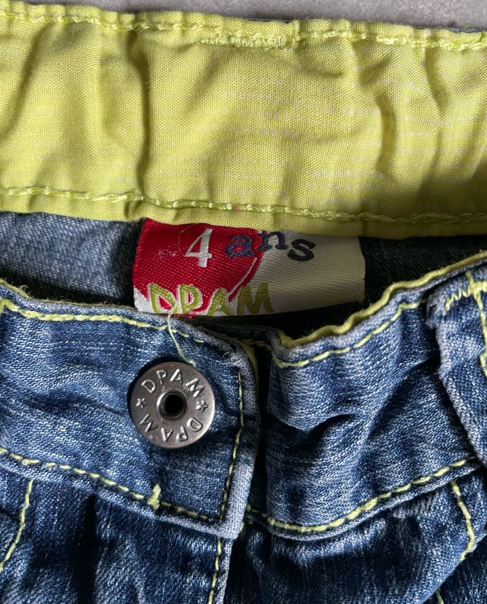 Pantacourt jean de la DPAM Taille 4 ans Présence d’une légère tache sur le devant en bas (voir photo) Occasion, bon état