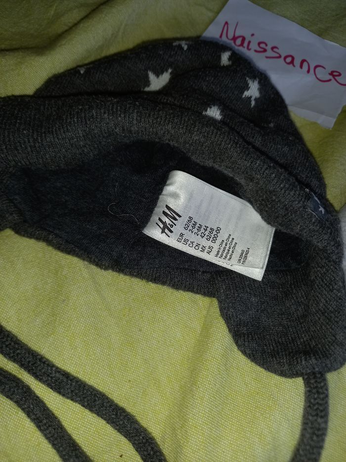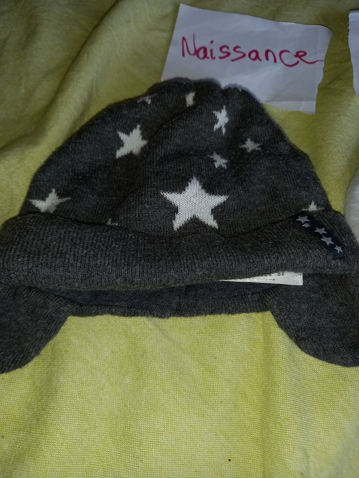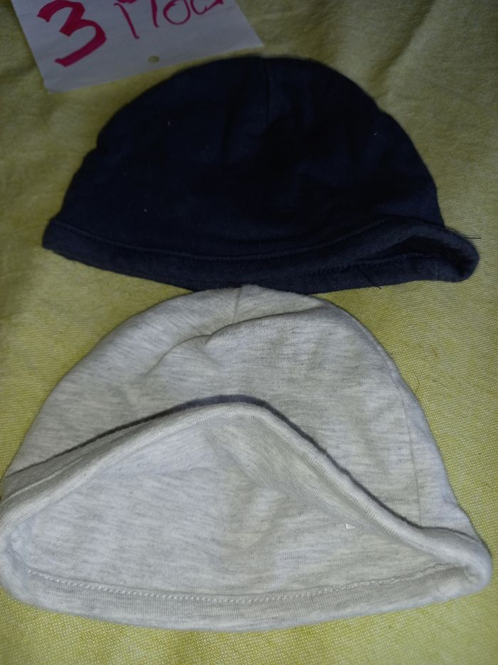 Lot 3 bonnets bébé 2 coton doublé, 1 gris 1 bleu marine 1 laine doublé coton gris étoiles #lilysam63_naissance #lilysam63_1mois #lilysam63_3mois