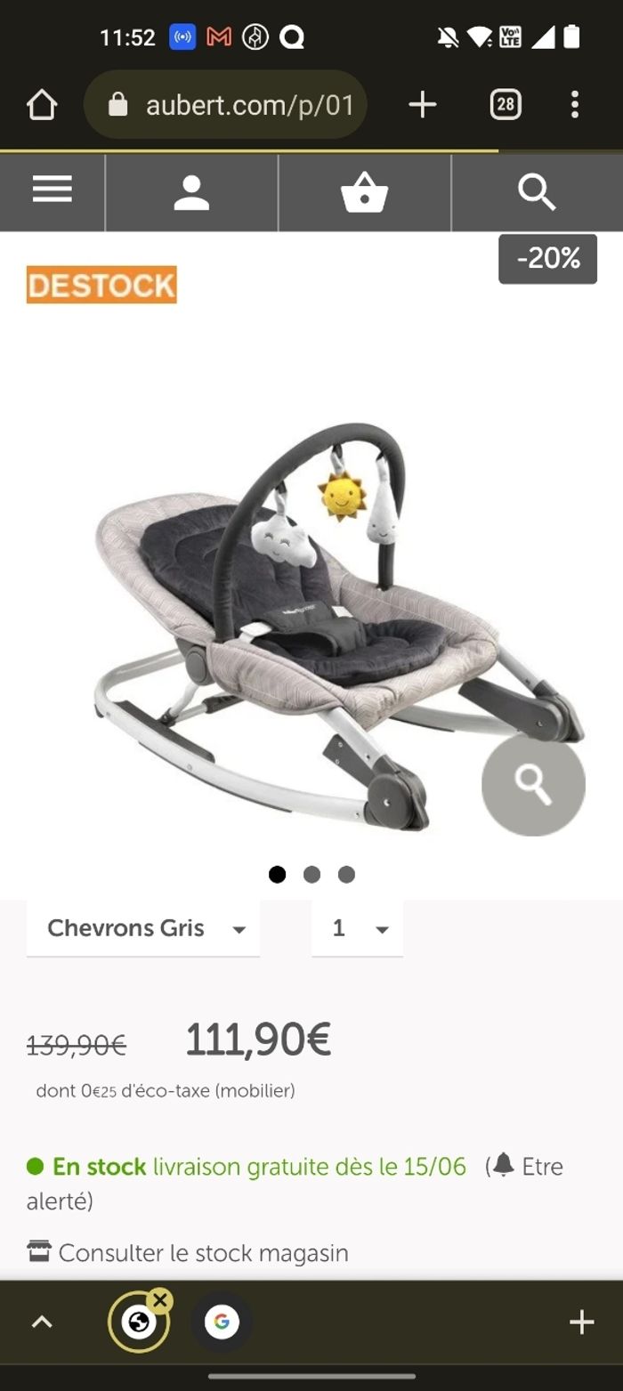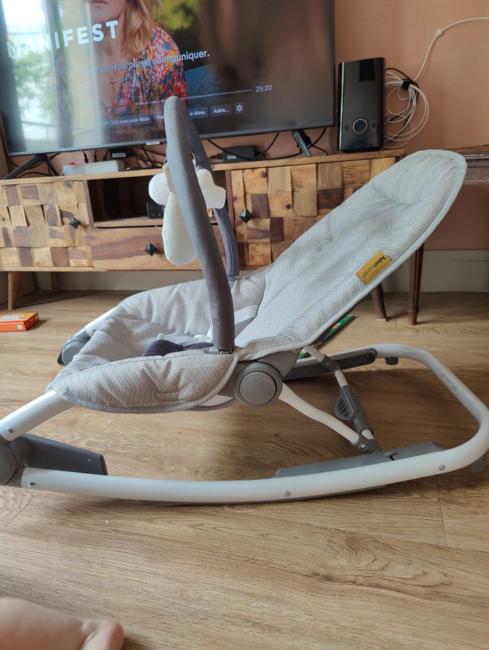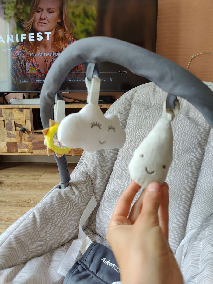 Transat bébé Aubert, la partie en velours a été retirée pour l'été mais sera dans le pack. À peine utilisé, mon bébé est du genre actif. Sans aucun défaut.