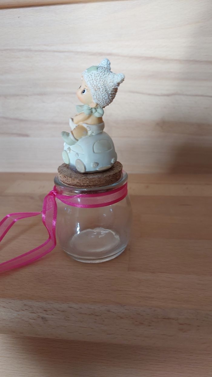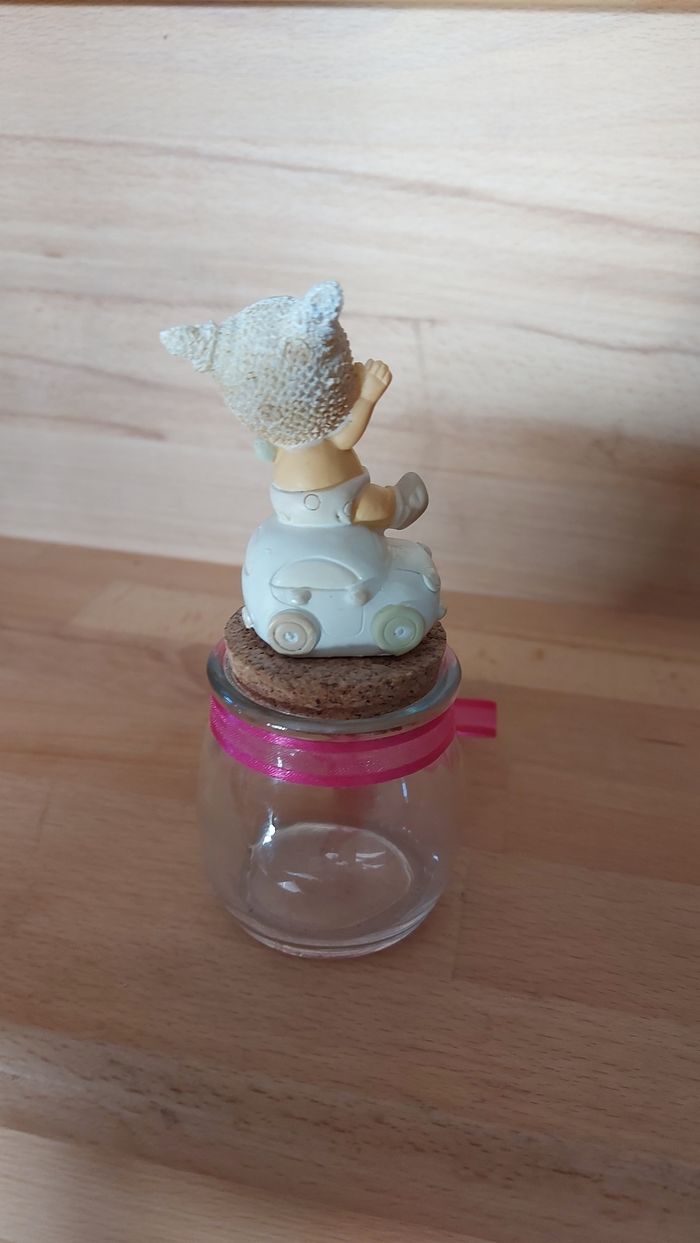 Pot en verre, bouchon en liège Diamètre 6 x ht tot 13 cm