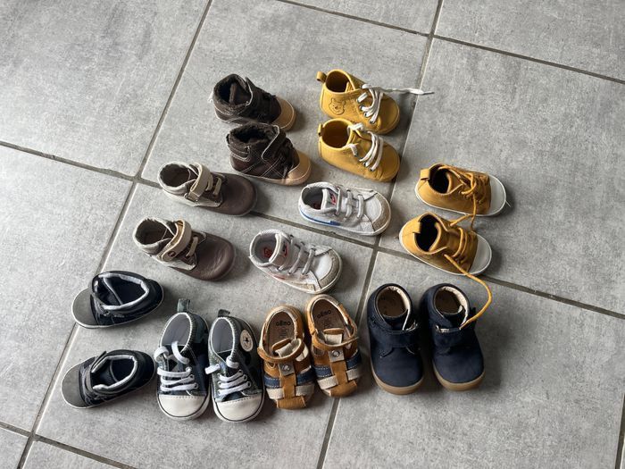Lot divers de chaussures pour bébé garçon allant jusqu’à la taille 19.