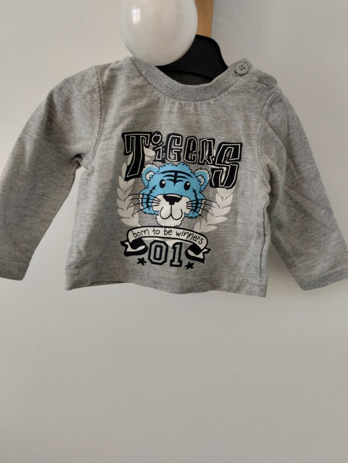 T shirt manches longues, boutons à l'épaule. Taille 0-1 mois. Marque Zeeman. Très bon état.