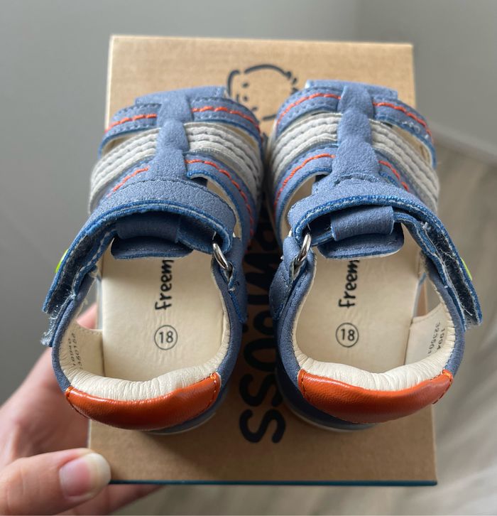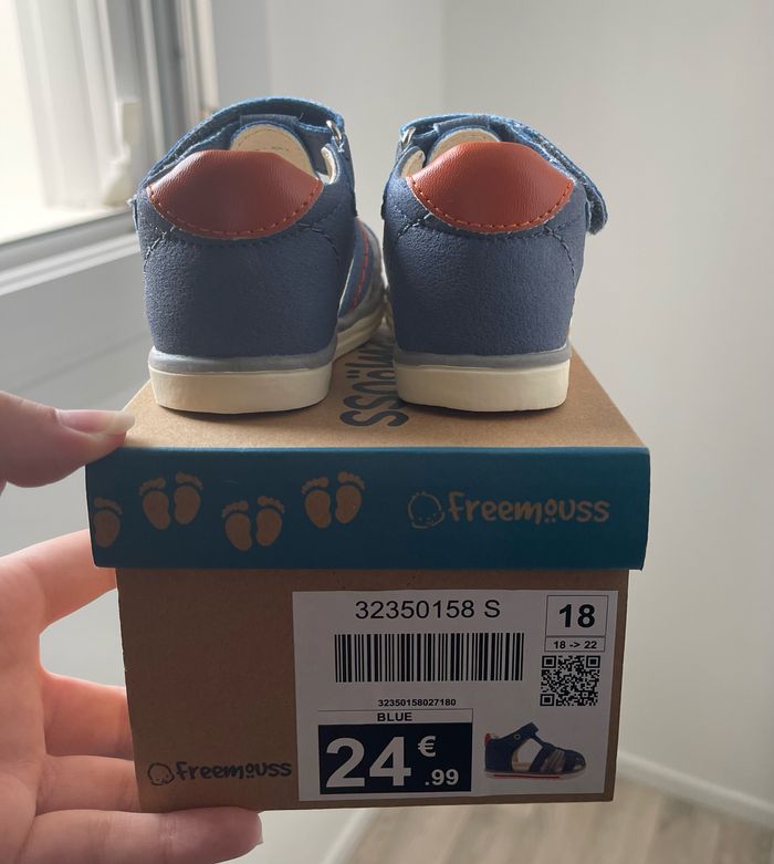 Bonjour je vend des sandales bébés en taille 18, elles sont neuves, mon fils a le pied trop gonflé elles sont trop petites pour lui il l’es a portés juste pour les essayer, bien évidemment je n’ai plus le ticket pour me faire rembourser… Je l’es vends 15€.