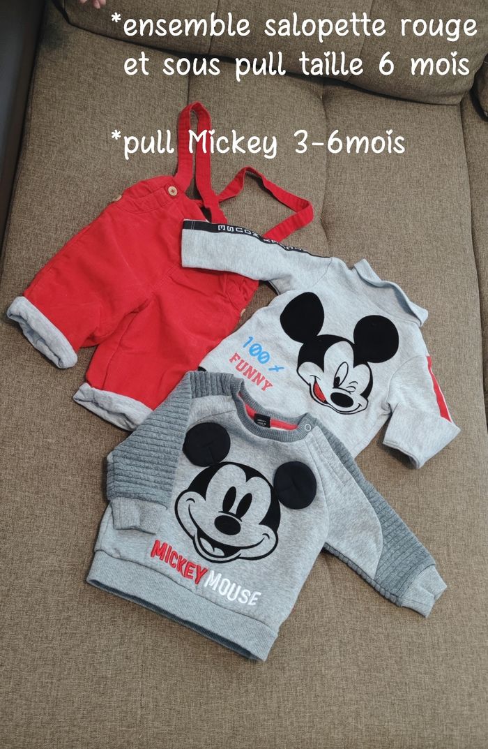 1 salopette, 1 sous pull ( 6 mois) et un pull 3-6 mois)