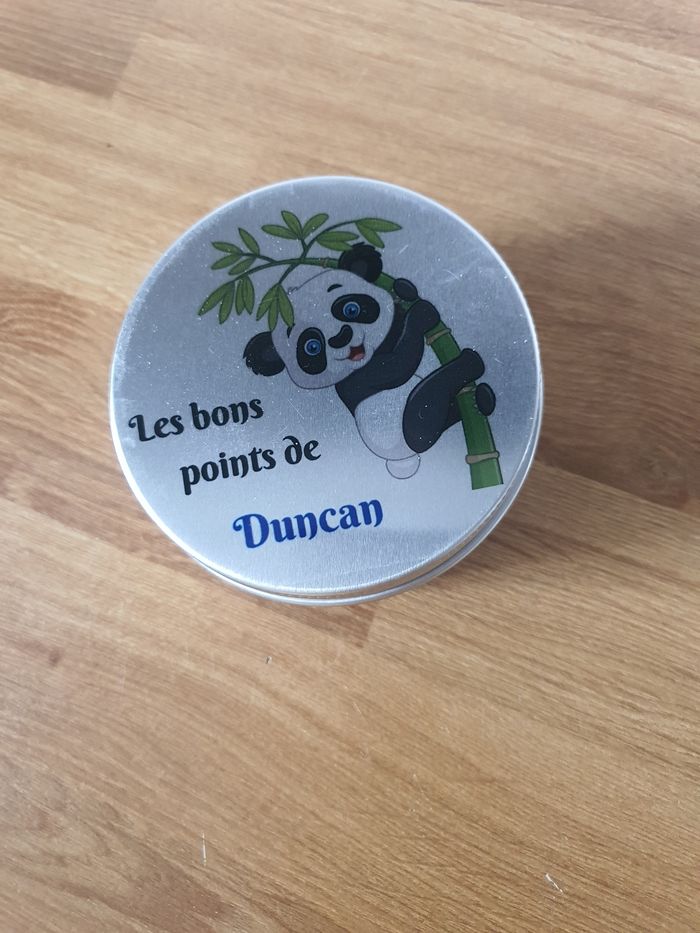 Boite en métal personnalisé au prénom de vôtre choix. Motif panda Diamètre de 9 cm sur 4 cm de haut sans couvercle et 4.7 cm avec couvercle. Boite de rangement pour tous type de petit accessoire. Bouton de couture aiguille médicaments pansement 1er secours boite a bons points .... Vous pouvez choisir une autre image si besoin n'hésitez pas. Privilégier shop2shop