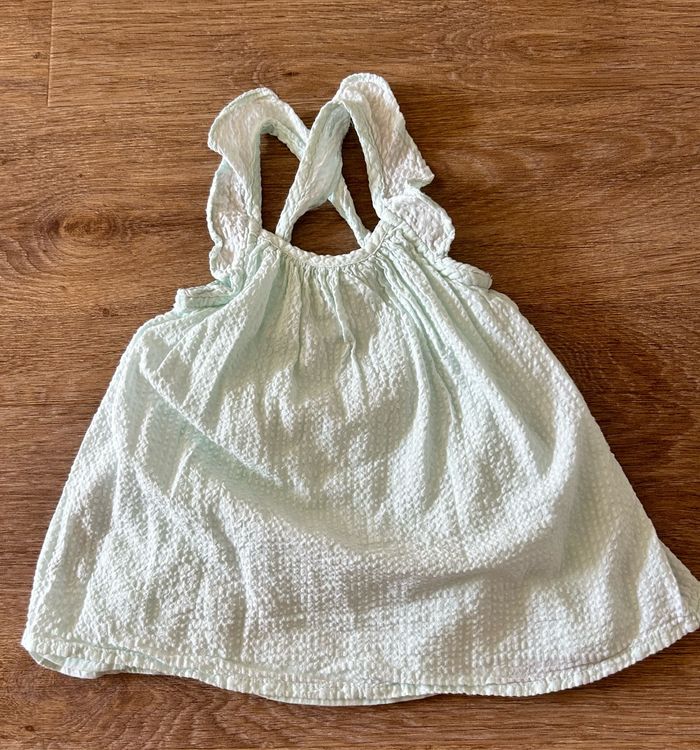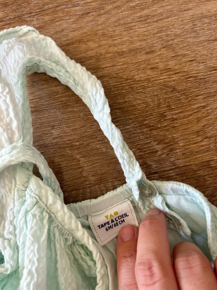 • Mignonne petite robe à rayures vert d’eau Bretelles réglables Taille 6 mois