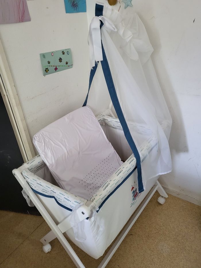 Vend berceau lulu castagnette pliable et à roulette. En très bon état, très peu utilisé