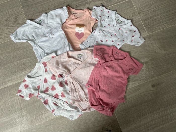 Lot de 6 bodies manches courtes ouvertures croisée par devant en taille 1 mois