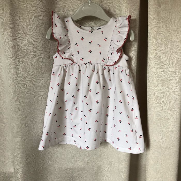 Petite robe confortable Coton comme les t-shirt Blanc motif cerises Taille 9 mois 69-72 cm Kiabi