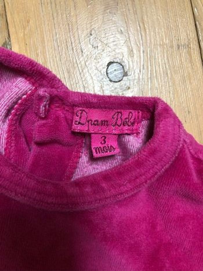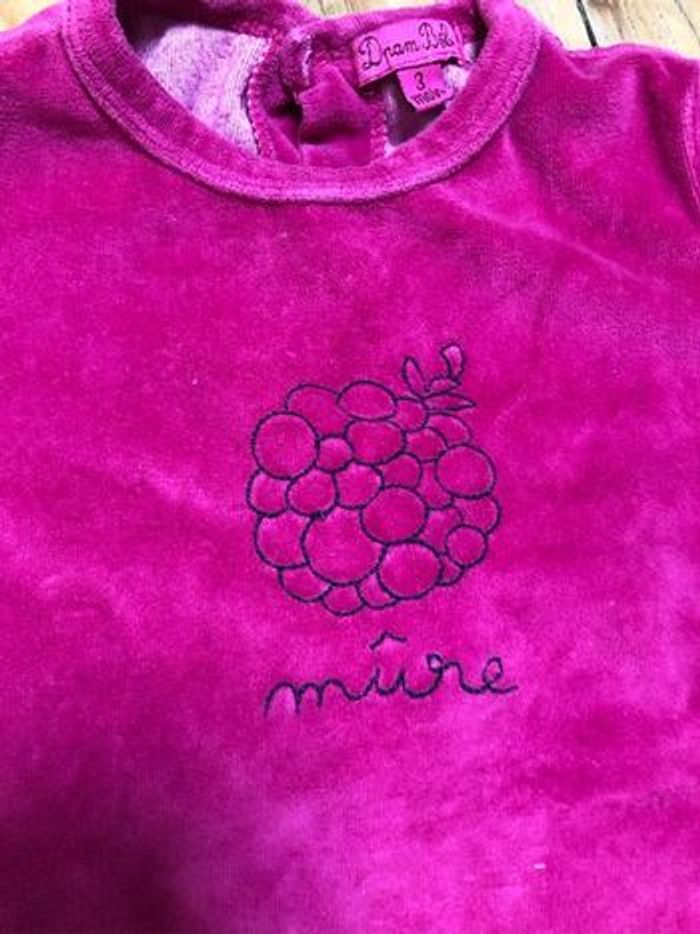Pyjama velours fuschia brodé mûre , plus clair que sur les photos Taille 3 mois DPAM bébé pression recousu, tient parfaitement
