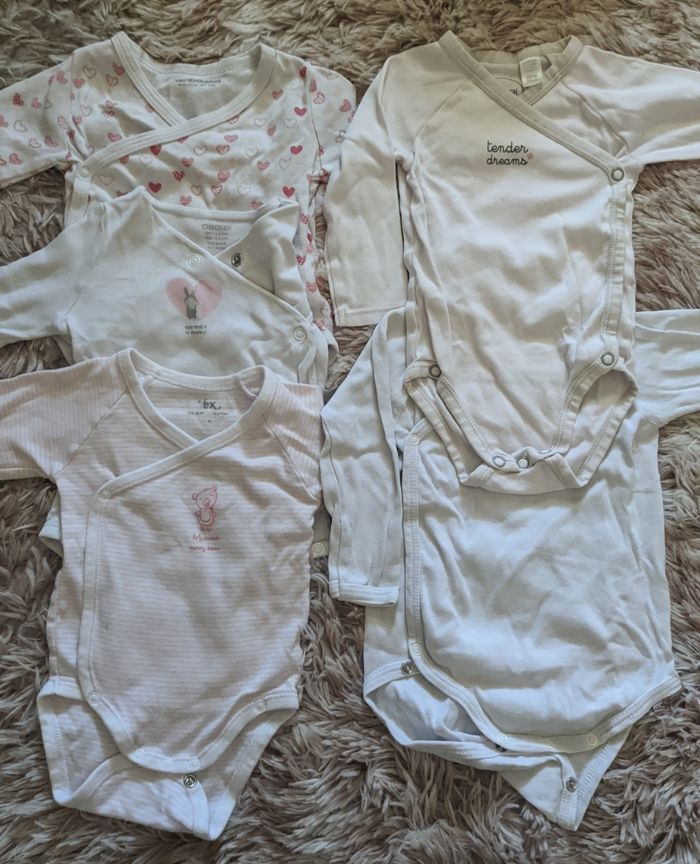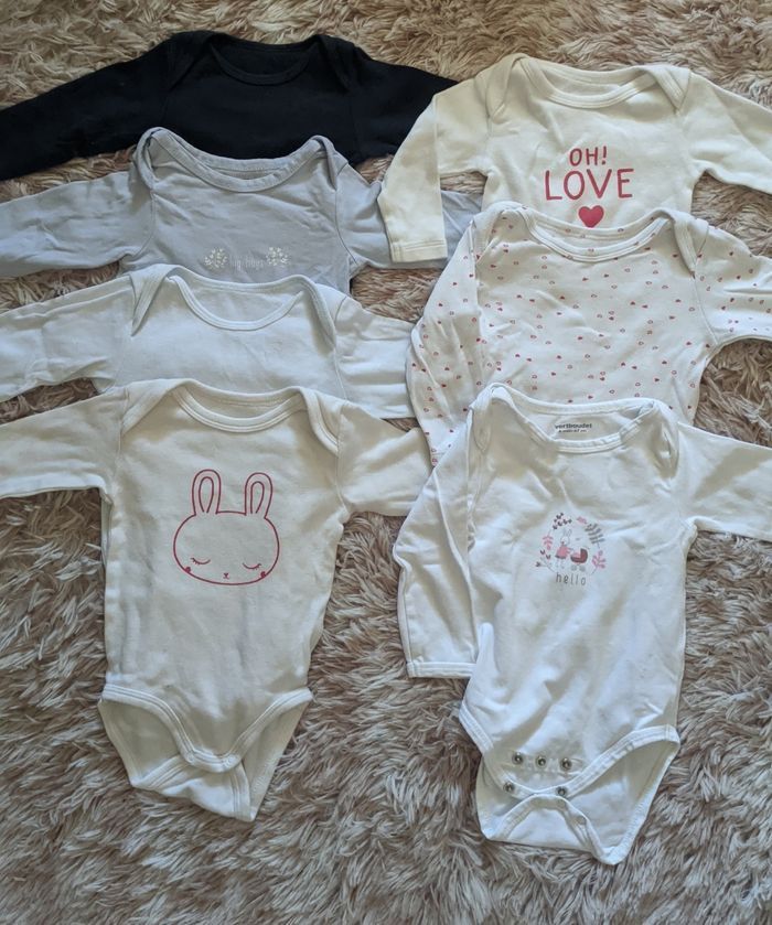 Bonjour, Je vends un lot de vêtements en bon état, chaque vêtement sera relavé à la lessive hypoallergénique pour bébés avant envoi. Plusieurs marques Taille 6 mois Possibilité de prendre qu'une seule pièce. Certaines étiquettes peuvent être coupées car elles gênent ma fille. 😊 2 t-shirt manches longues/sous pulls 3 pyjamas manches longues 1 pyjama 2 pièce 1 ensemble 2 t-shirt manches courtes 1 manches longues 6 bodys manches longues 5 bodys manches longues ouverture sur le devant ( obaibi Vertbaudet) 7 bodys manches longues