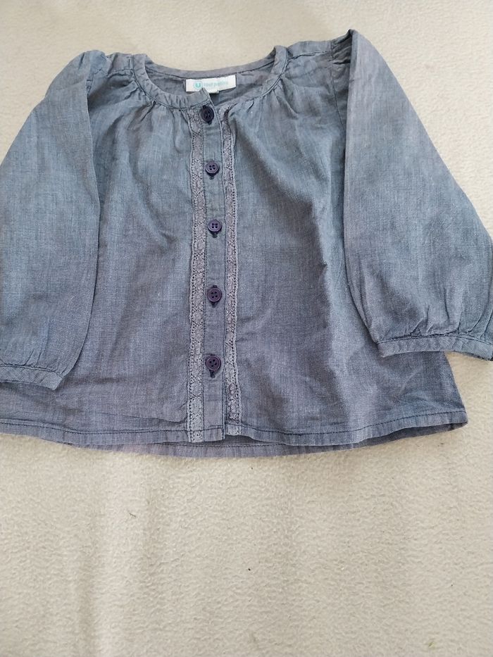 Petit haut fille 9 mois avec bouton couleur bleu marine et petit bouton également au niveau des poignées couleur bleu marine