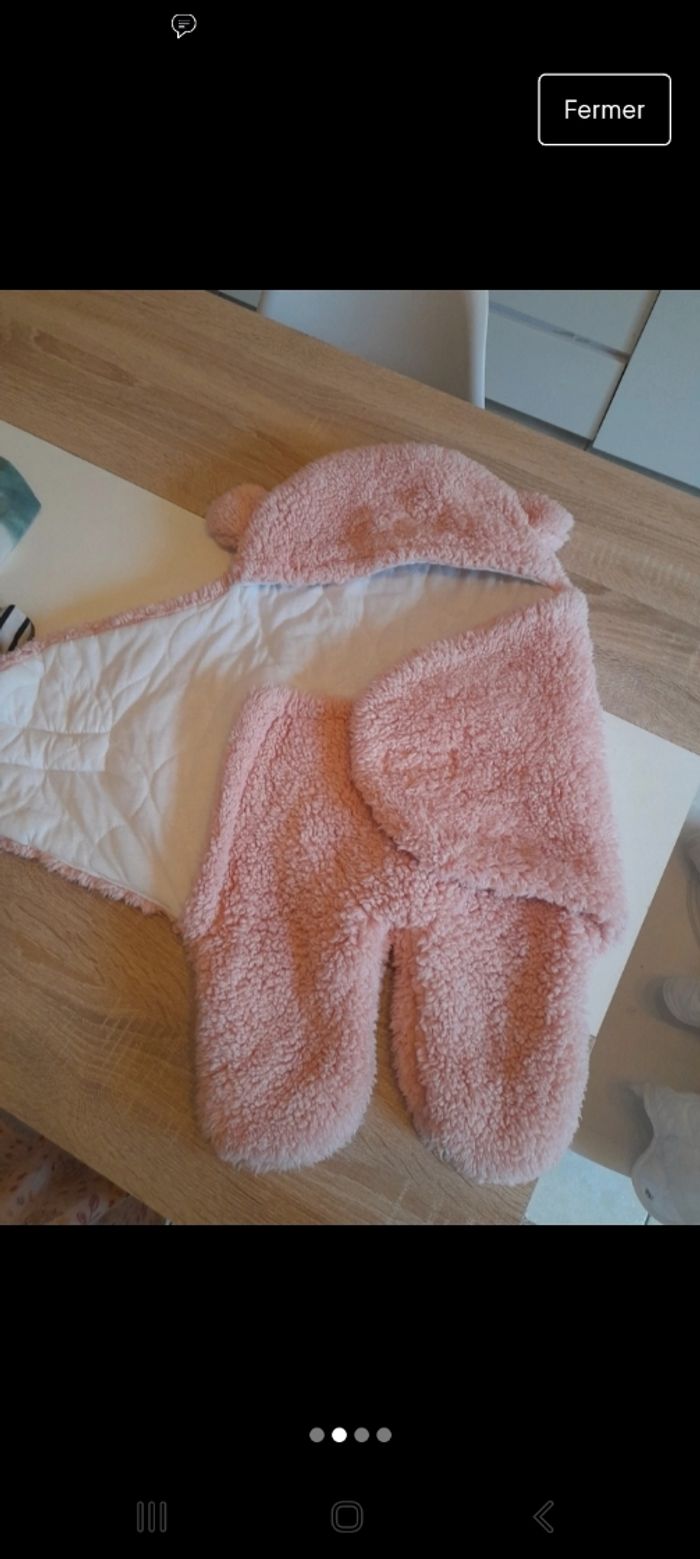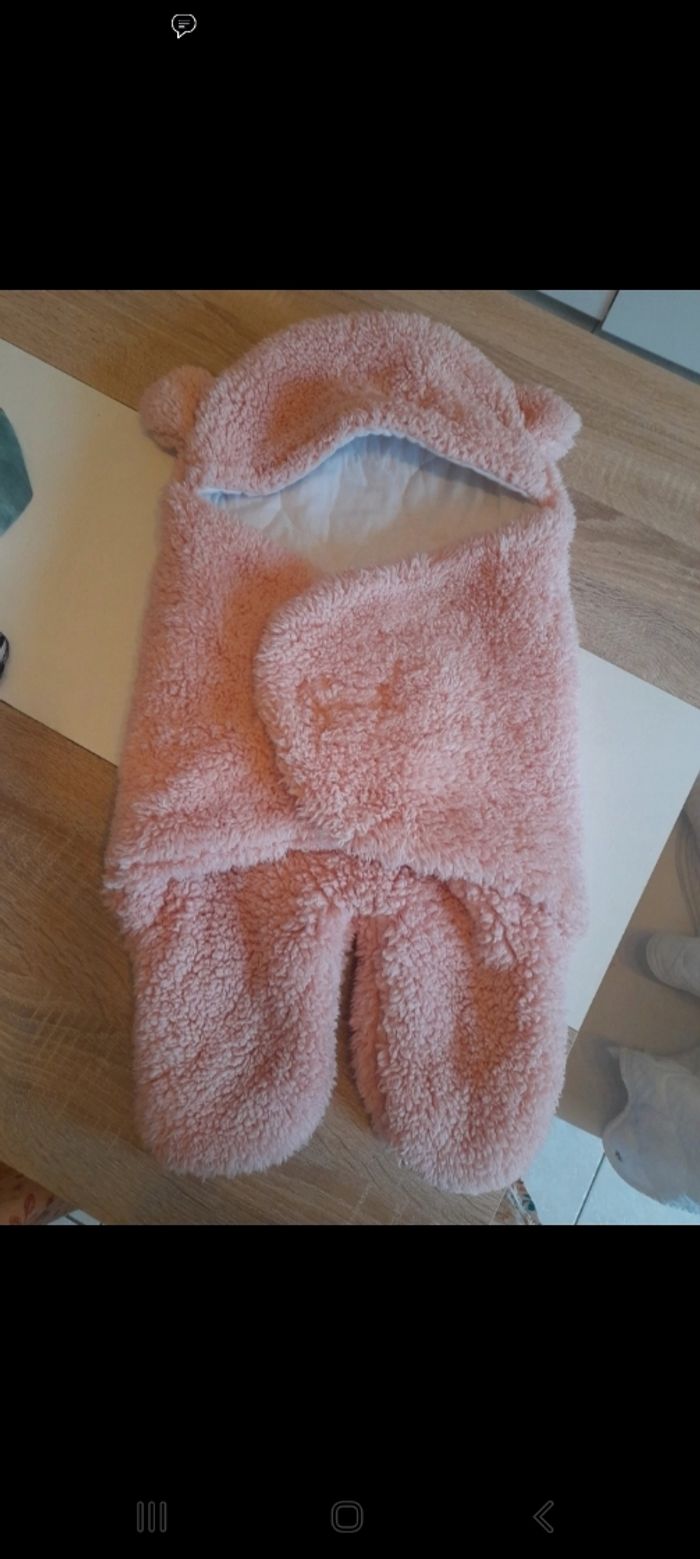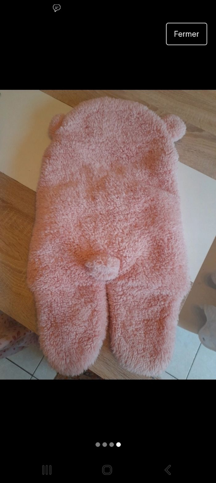 Chancelière ourson 0-6mois Se fixe avec un stracth devant Tout doux dans les tons rose poudré Boutique independante