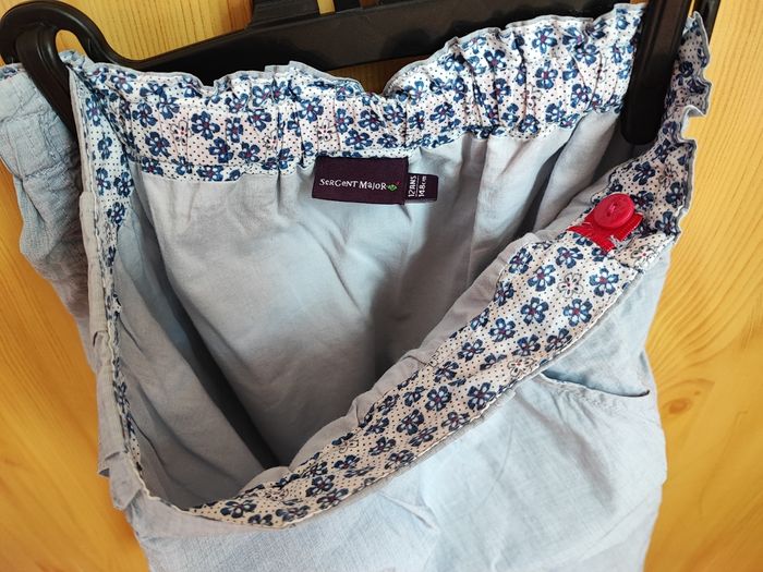 Jupe droite gris clair. Taille ajustable.