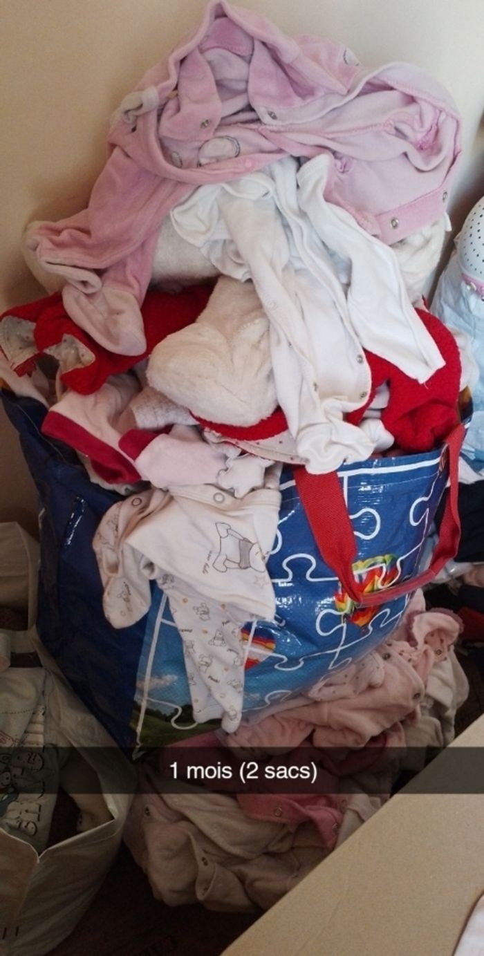 A vendre vêtements 0 et énormément de 1 mois ainsi que Baignoire Parc gonflable Biberons et mobiles pour lit et Gigoteuses
