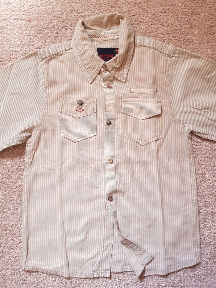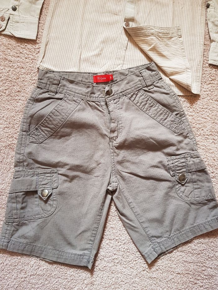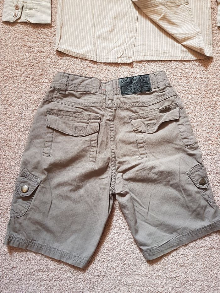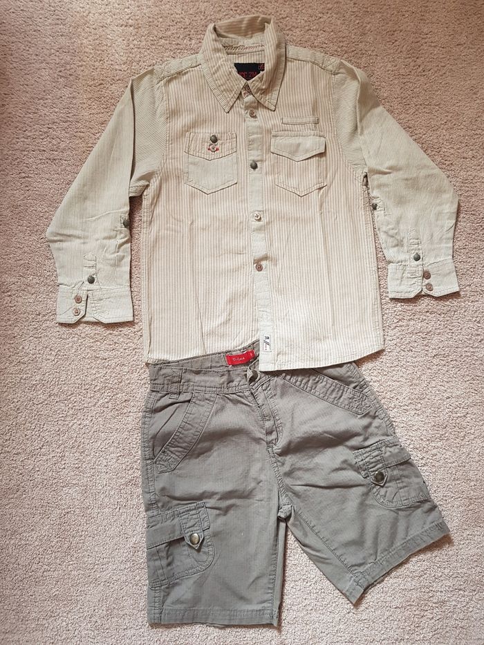 Tenue garçon 6 ans composée d'un short gris et une chemise manches longues beige (manque dernier bouton) Envoi rapide et soigné via diverses plateformes