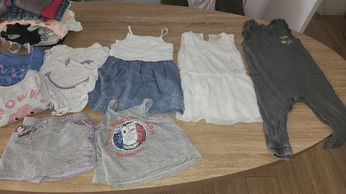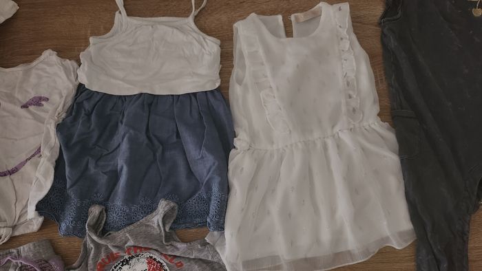 Lot fille 2ans multi marque 2 robe dons 1 gap 2 ma.che longue 1 combinaison <bouton pression à réparer > 1 ensemble jupe t short smiley 1 débardeur smiley 8 article