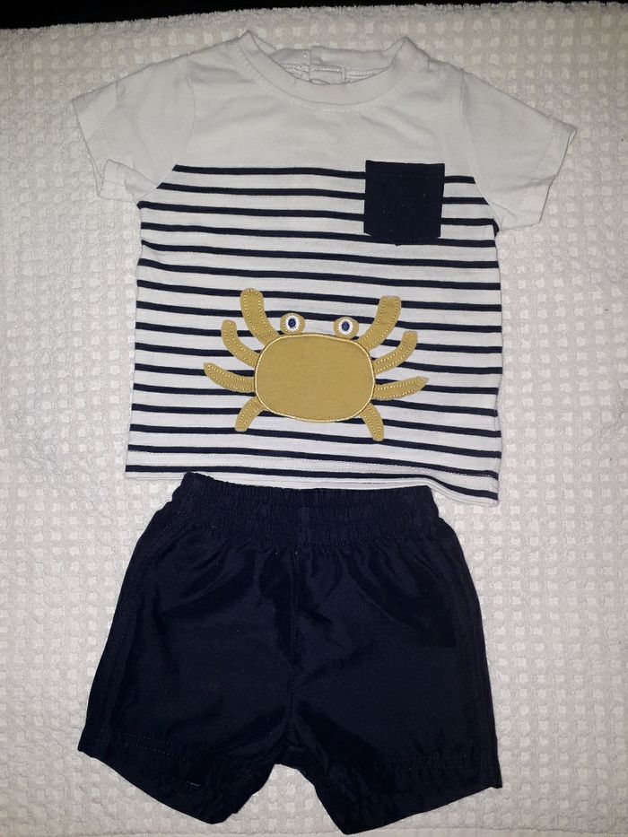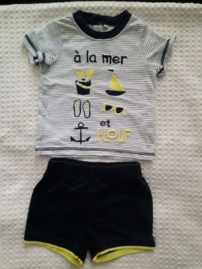 Lot de 2 ensemble taille 6 mois Short/t-shirt Très bon état,porté 2 ou 3 fois Maison non-fumeur et sans parfum Lavé au savon de marseille Réductions actives dès 3 articles